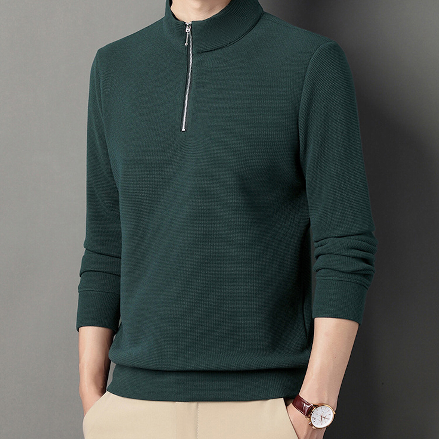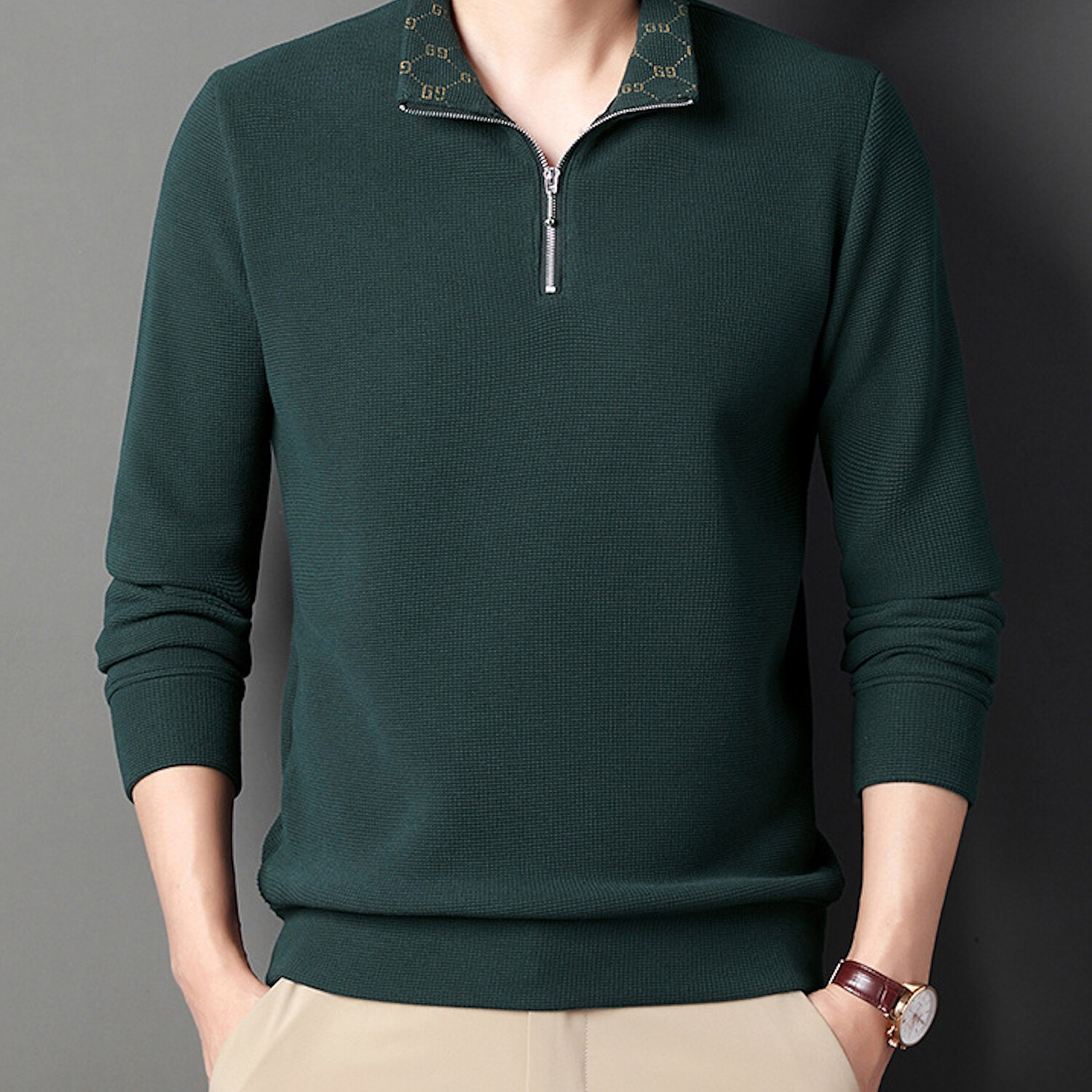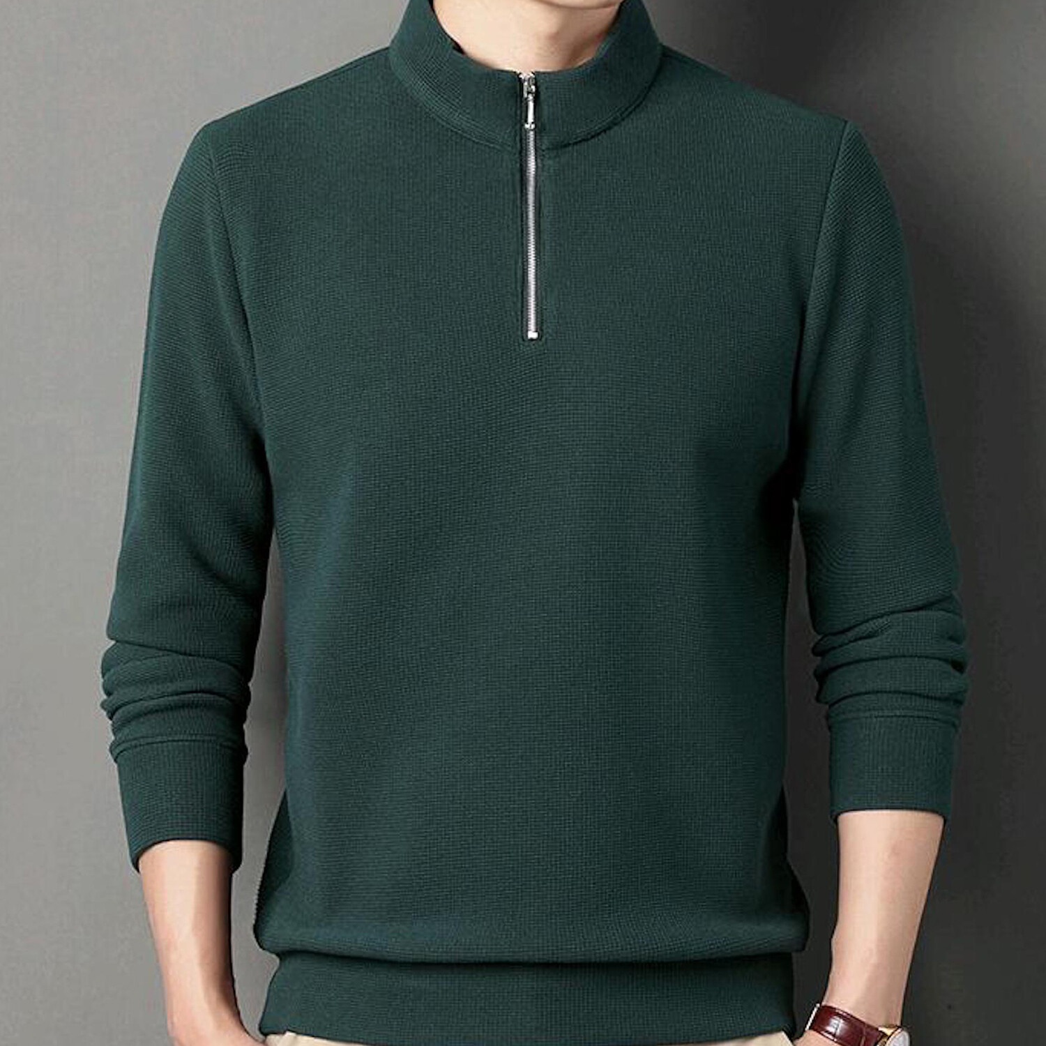 Sleek Contrast Zipper Quarter Zip Sweatshirt // Green