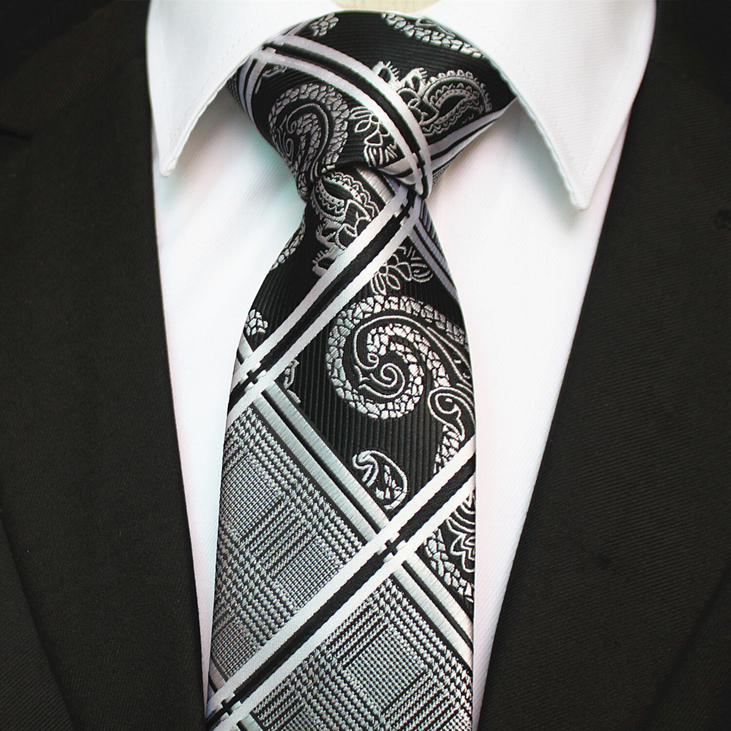 Silk Neck Tie // Black + White Paisley