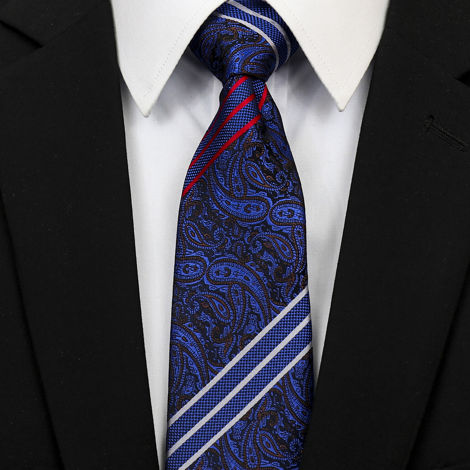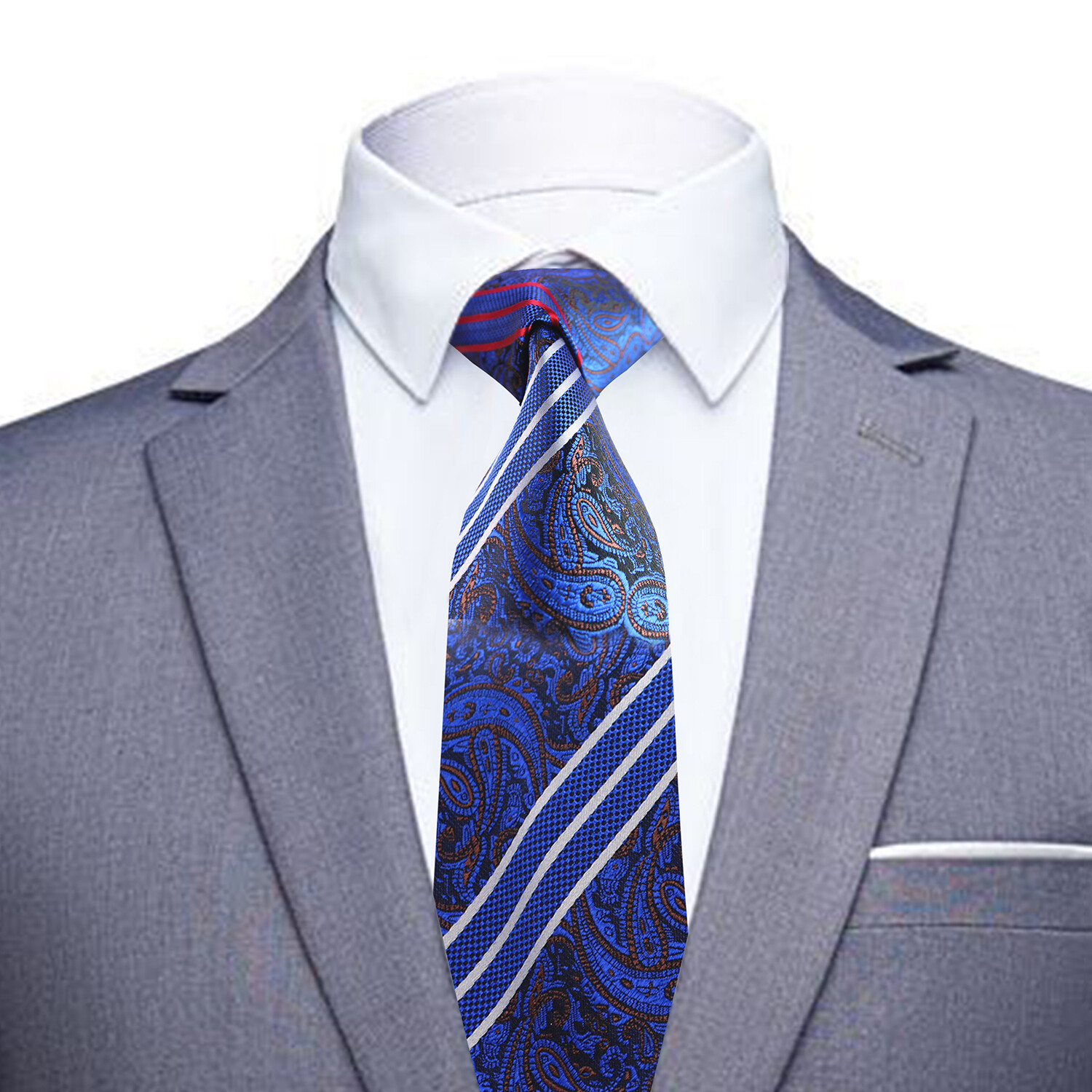 Silk Neck Tie // Blue Paisley with Stripes