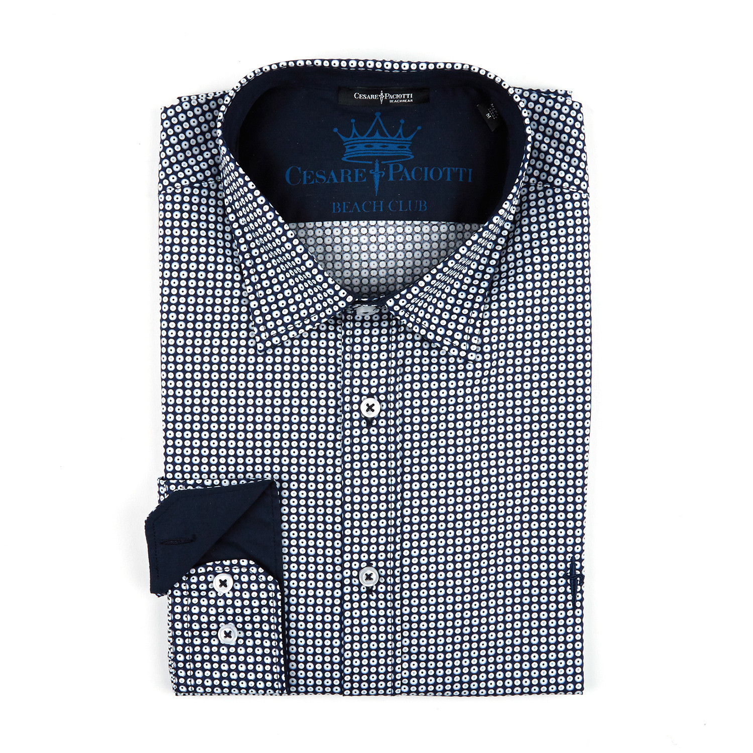 Long-Sleeve Button-Up Shirt // Blue + White Dot