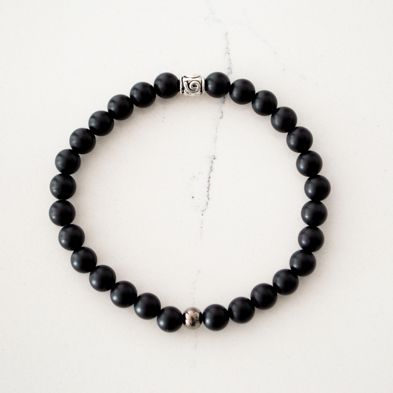 This handmade Matte Black Bracelet features 6mm integrated gemstones and is the perfect accessory for every gent. Stack it and match it with your watch collection to complement any outfit, whether suited or casual.