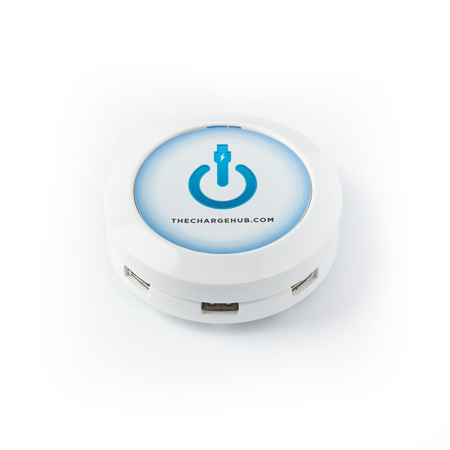 The ChargeHub Travel Pack 7-Port USB SuperCharger utilizes patent-pending SmartSpeed Technology that provides optimal charge, up to 2.4 amps per port, for virtually any USB chargeable device regardless of whether it is an Apple iOS, Android, or any other device. Eliminates excess cable and numerous plugs, outlets, and power strips to maintain a neat and organized space. The soft blue LED power indicator light shows the ChargeHub is on and functional and the adjustable blue LED underglow effect can be used in the dark.