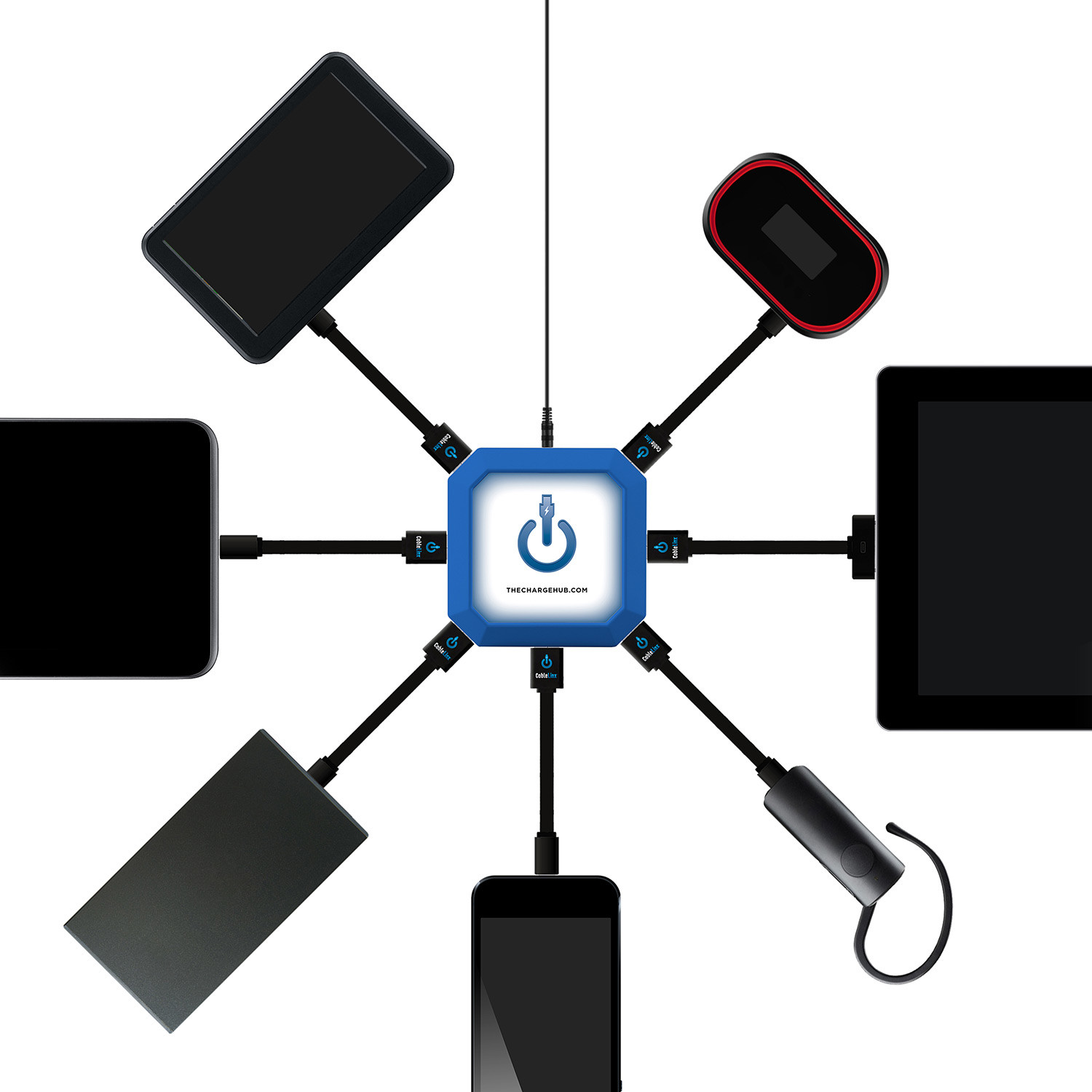 The ChargeHub utilizes patented SmartSpeed Technology which provides optimal charge for virtually any USB device, up to 2.4 amps per hour, regardless of whether it is an Apple iOS or Android device (based on number and type of connected devices). It provides 7 USB dedicated charging ports and 48 watts of total power delivery to charge up to 7 USB devices simultaneously, with only a single power supply. The ChargeHub eliminates excess cables and numerous plugs, outlets and power strips to maintain a neat and organized space. It provides optimum quality, safety and durability.