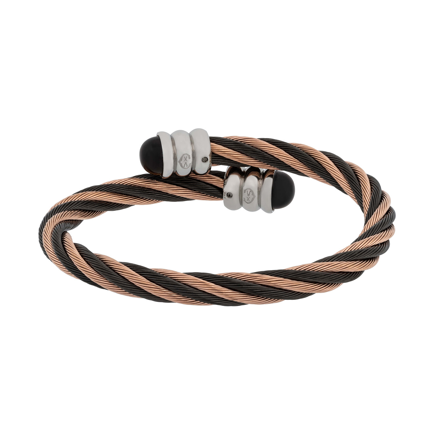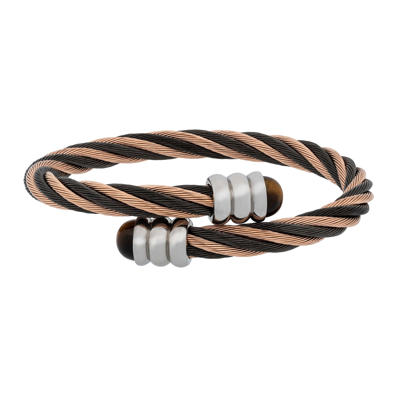 Charriol // Celtic 88 Gray + Pink PVD Stainless Steel Cable + Tiger Eye Stones Bangle