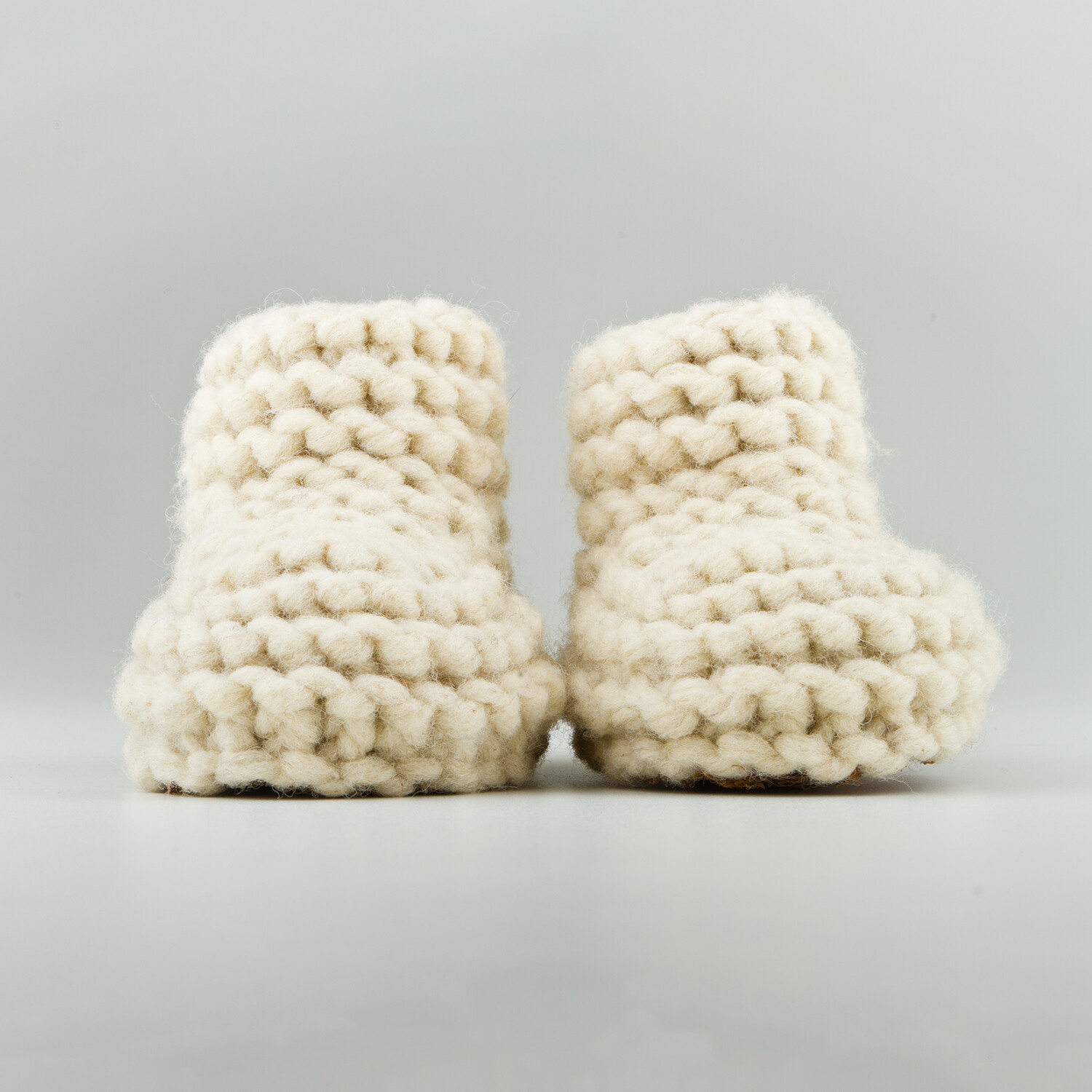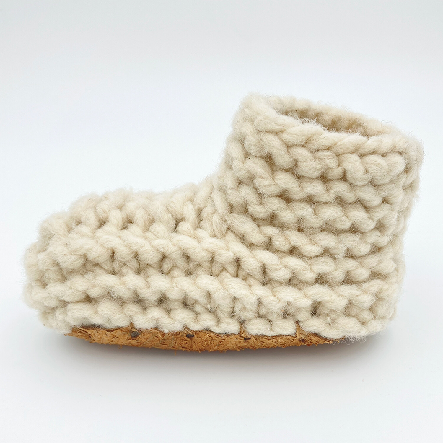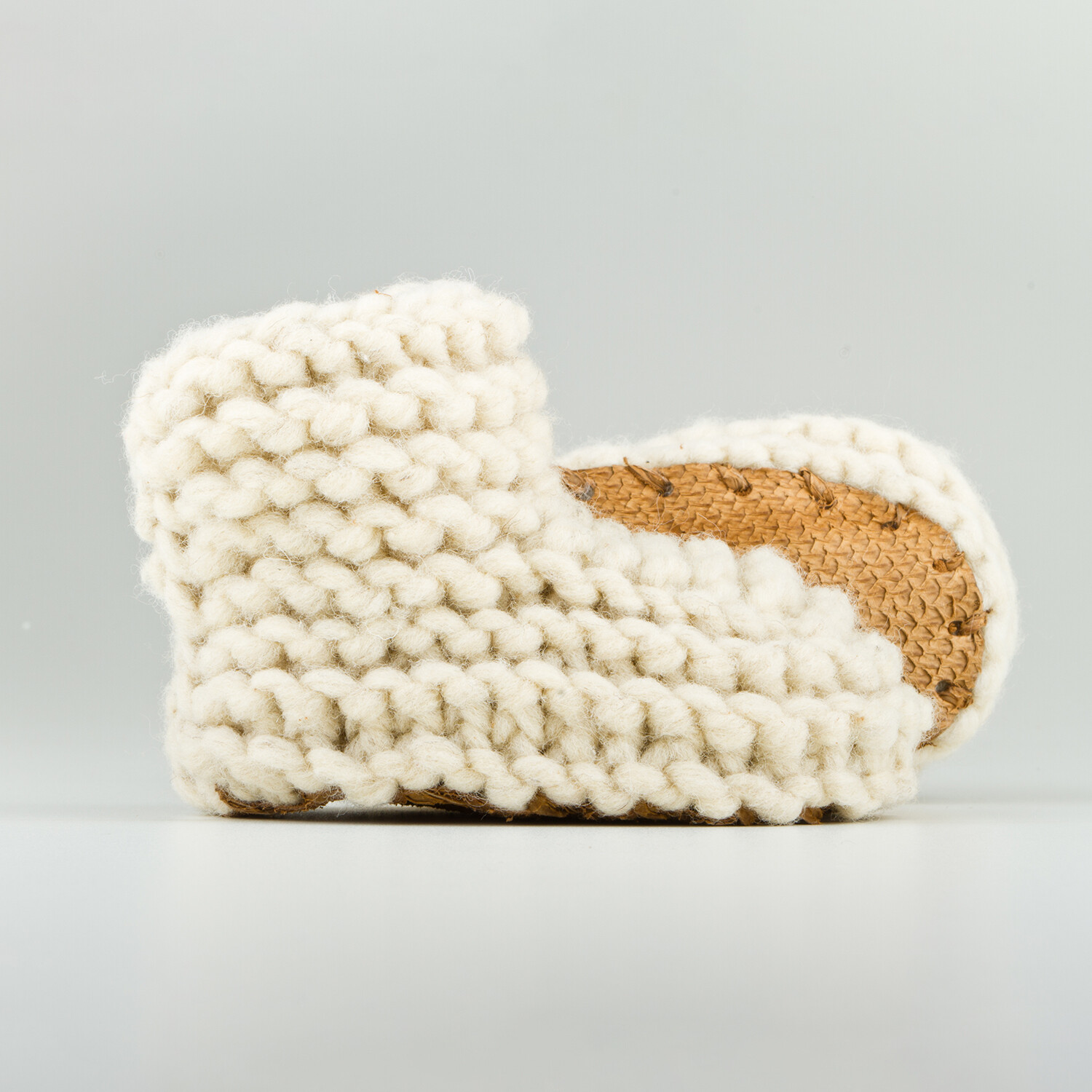 Oh, baby! Keep those toes-ies cozy and super cute in the mini version of our adult slipper. Warm, comfortable, and made to last. With no factory in sight, each pair of Salmon Slippers are handcrafted slowly, by a network of independent artisan women in Patagonia. Co-created by Stiven Kerestegian, the Chilote Salmon Slippers are crafted utilizing traditional knitting techniques that have been passed down through centuries. Each pair comes with a QR code that transparently tracks them back to the artisan group that made it.