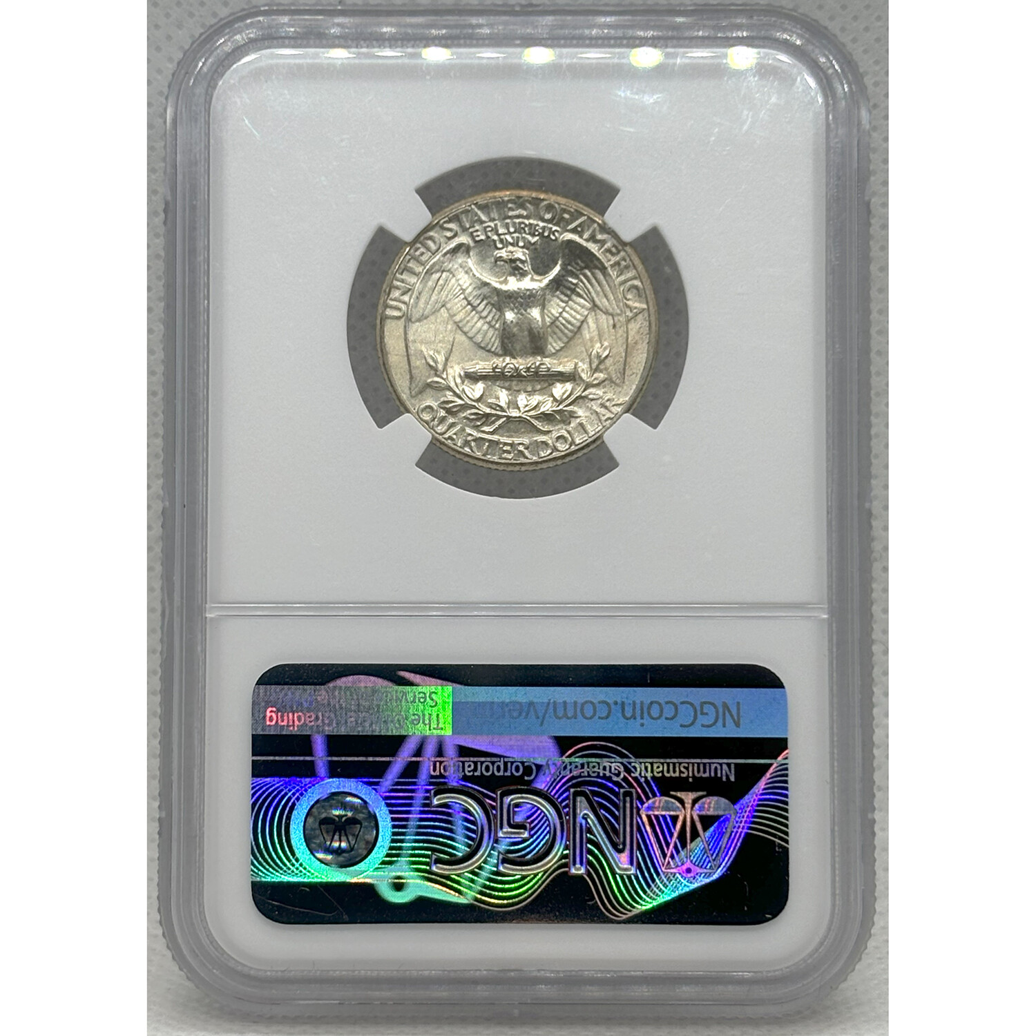 This Washington Quarter is graded by NGC in Mint State 66. The NGC encapsulation guarantees the coin’s MS-66 condition.