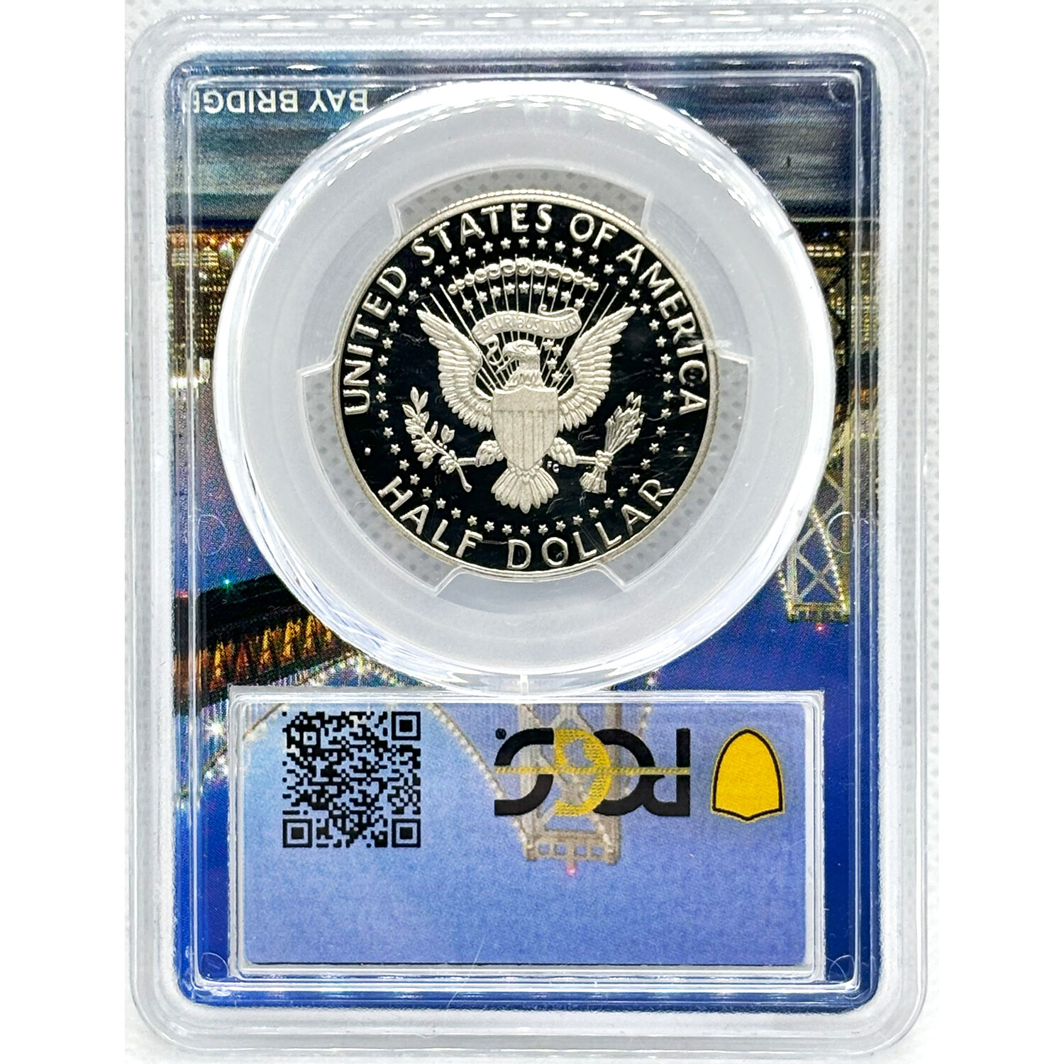 This coin also has the rare San Francisco Bay Bridge label. This matches the location of the San Francisco Mint, which is where the coin was struck.