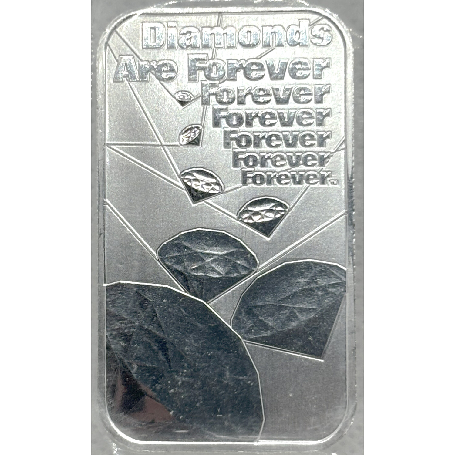 Introducing the JAMES BOND 007 ONE TROY OUNCE SILVER BAR WITH ORIGINAL PACKAGING! The bar was minted in 2021 to commemorate the 50 year anniversary of the release of “Diamonds Are Forever”.