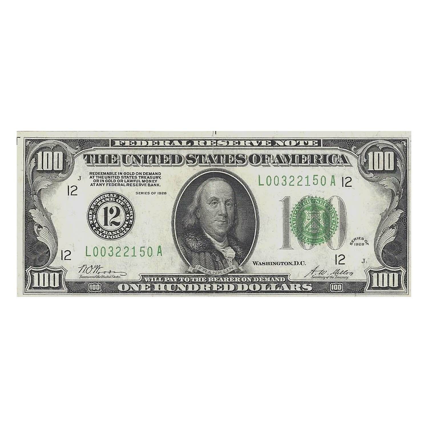 1928 $ 100 Federal Reserve # 12 San Francisco CU Redeemable in Gold # 150