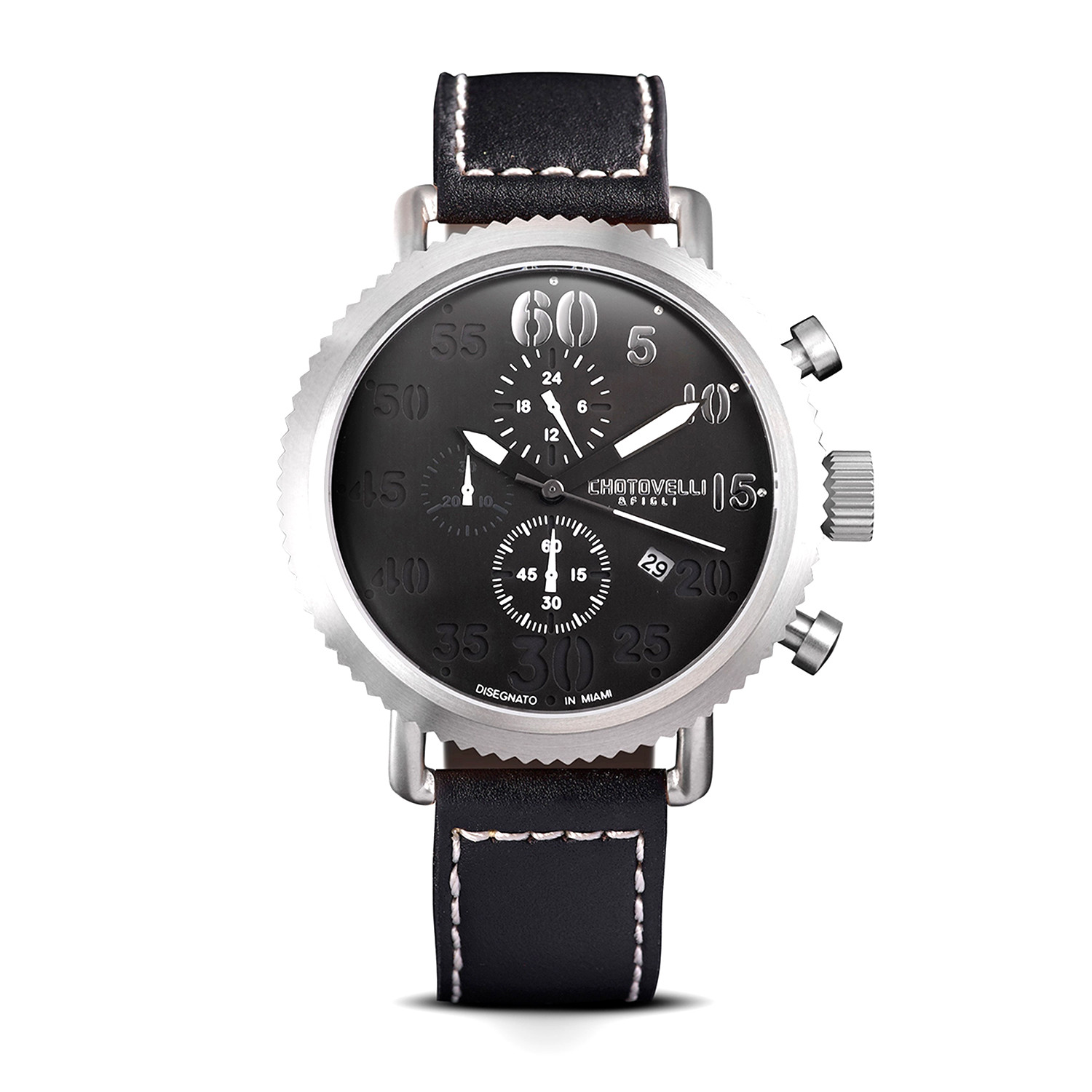 Chotovelli watches like this one draw their inspiration from vintage Italian aviation and automotive consoles, dials, and instruments. Each piece builds on the family-owned company's history of tradition, quality, and excellence.