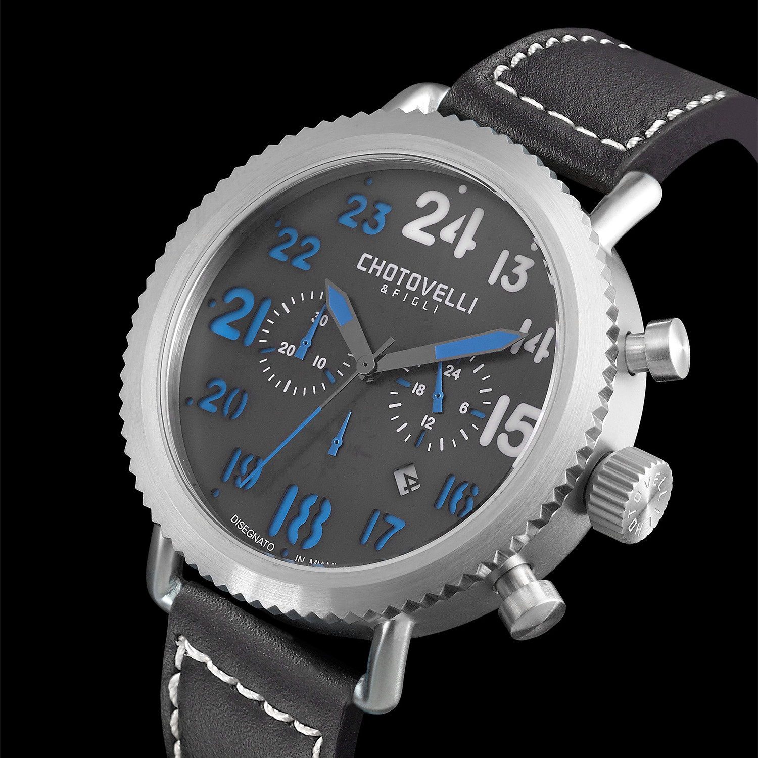 Chotovelli watches like this one draw their inspiration from vintage Italian aviation and automotive consoles, dials, and instruments. Each piece builds on the family-owned company's history of tradition, quality, and excellence.