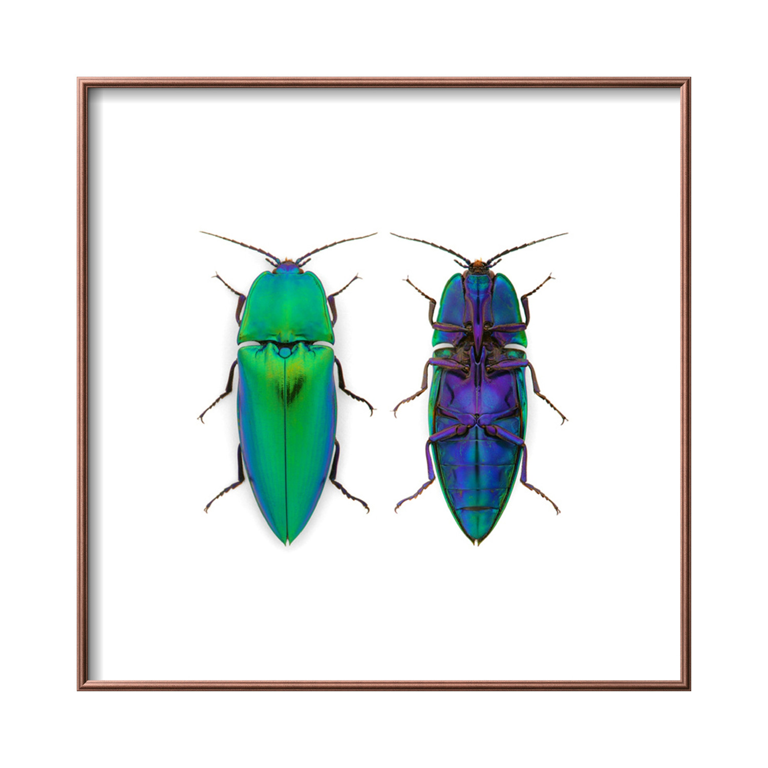 This beautiful print features an incredibleBorneo Click Beetle arrangement by natural artist Christopher Marley. Every detail of this beautiful beetle is captured in this high quality photographic print, which arrives at your home with a copper frame and mounting hardware already included. There's no better way to celebrate this Southeast Asian stunner in your home.