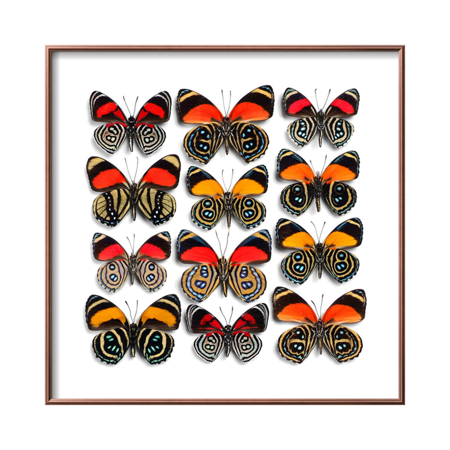 This beautiful print features an incredibleCallicore Butterflies arrangement by natural artist Christopher Marley. Every detail of these beautiful butterflies is captured in this high quality photographic print, which arrives at your home with a copper frame and mounting hardware already included. There's no better way to celebrate this nymphalid butterfly in your home.