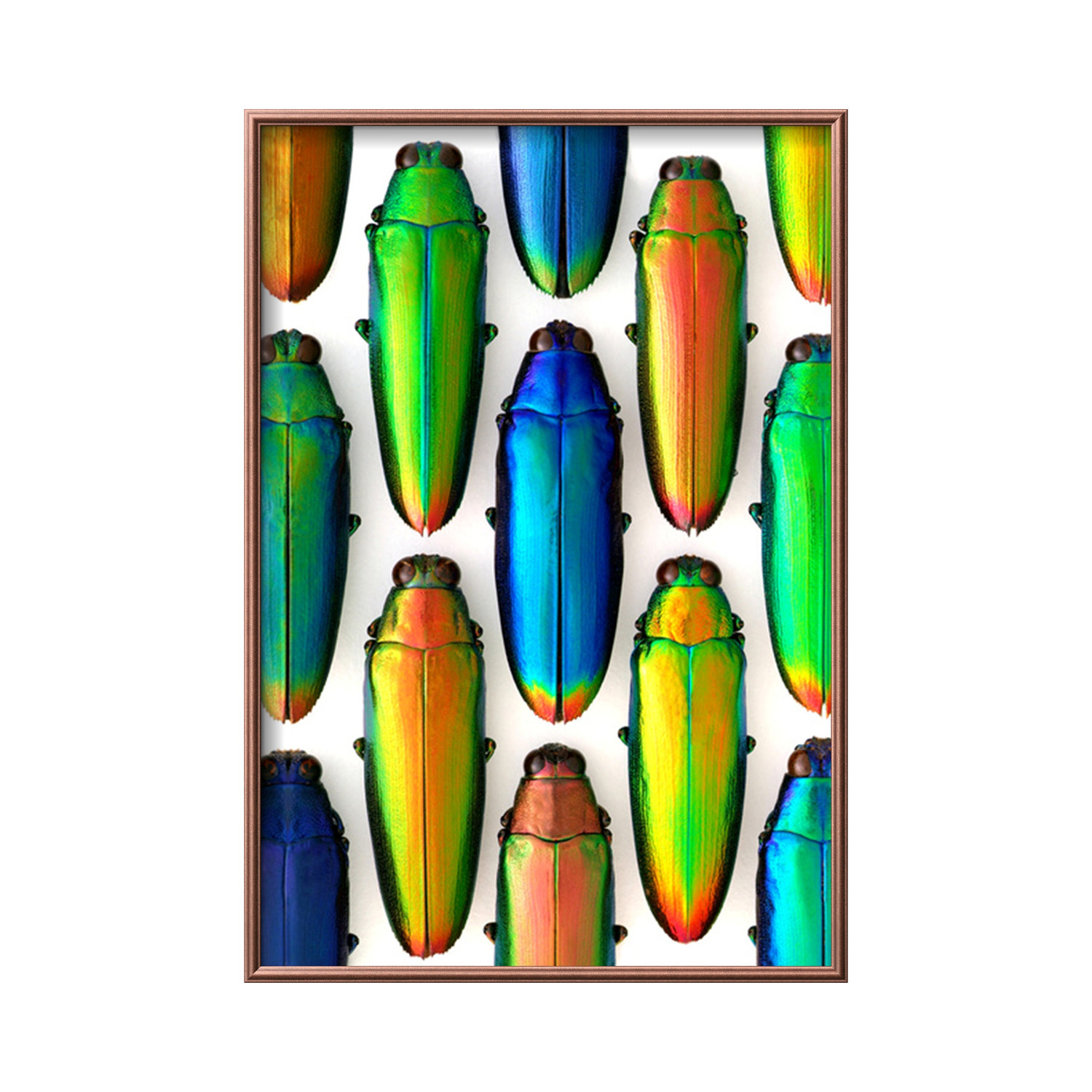 This beautiful print features an incredibleCobaltina arrangement by natural artist Christopher Marley. Every detail of these incredible insects is captured in this high quality photographic print, which arrives at your home with a copper frame and mounting hardware already included. There's no better way to celebrate the iridescence of insects in your home.