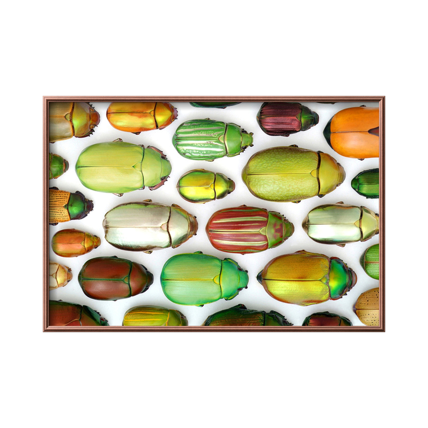 This beautiful print features an incredible Jewel Scarab Mosaic arrangement by natural artist Christopher Marley. Every detail of these incredible scarabs is captured in this high quality photographic print, which arrives at your home with a copper frame and mounting hardware already included. There's no better way to celebrate this jeweled gem in your home.