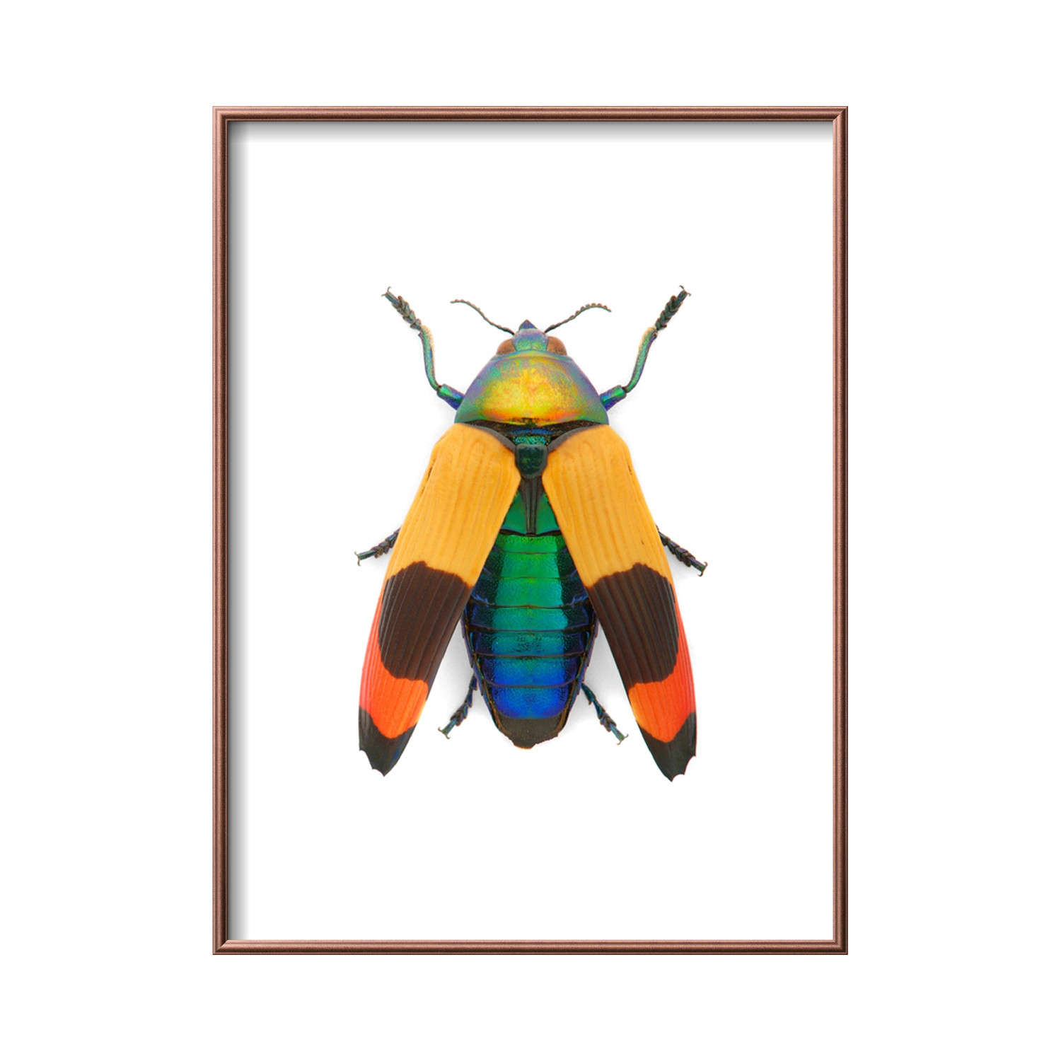 This beautiful print features an incredible arrangement of Metaxymorpha by natural artist Christopher Marley. Every detail of this incredible beetle is captured in this high quality photographic print, which arrives at your home with a copper frame and mounting hardware already included. There's no better way to celebrate this Buprestidae beetle in your home.