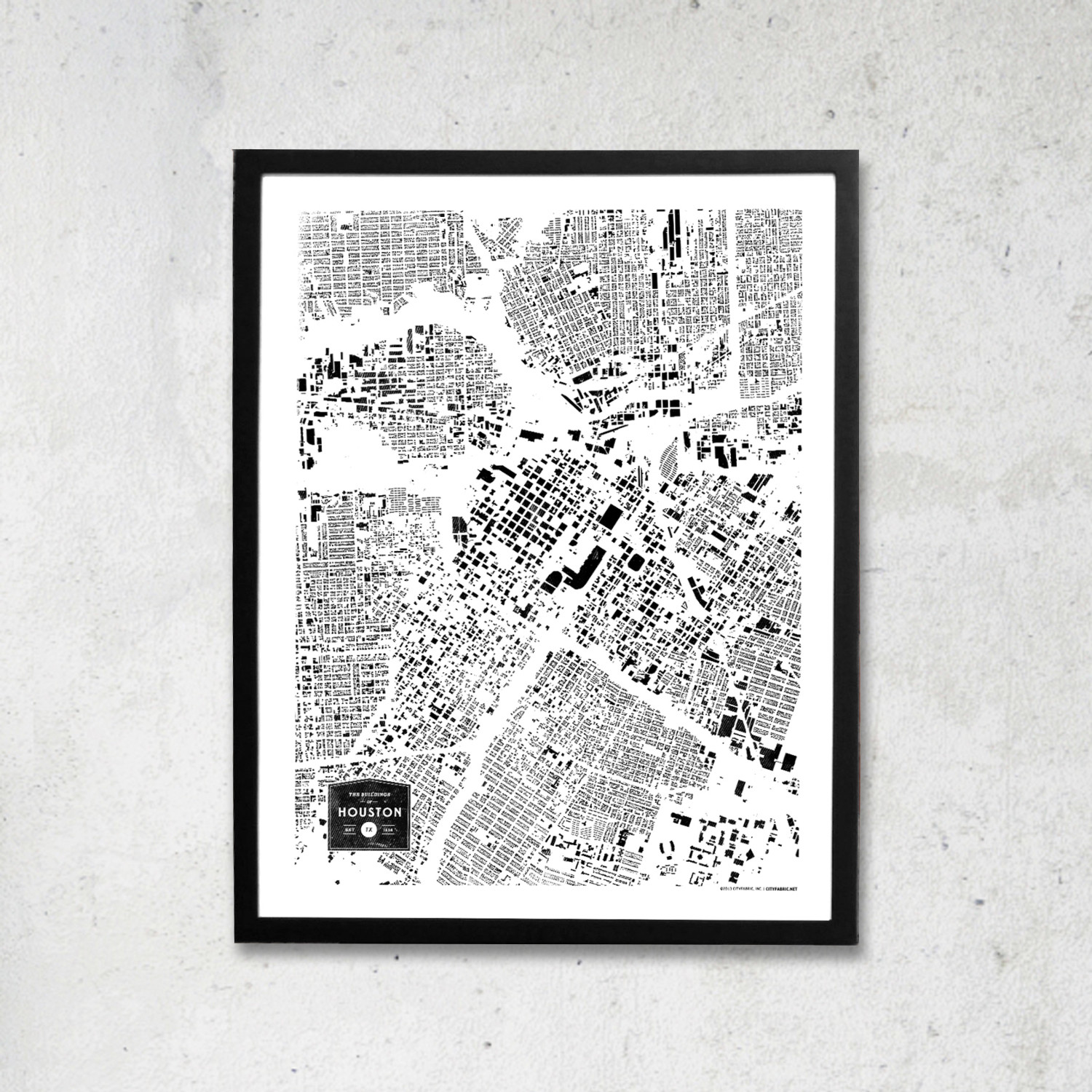 This gorgeous map of Houston captures the beauty of the city from above. This hand-crafted artifact is a must for any traveler’s kitchen or hometown hero. Your wall will stand proud wearing this beautiful and bold map of your favorite place. An emblem on the eggshell sheet proclaims its history proudly.