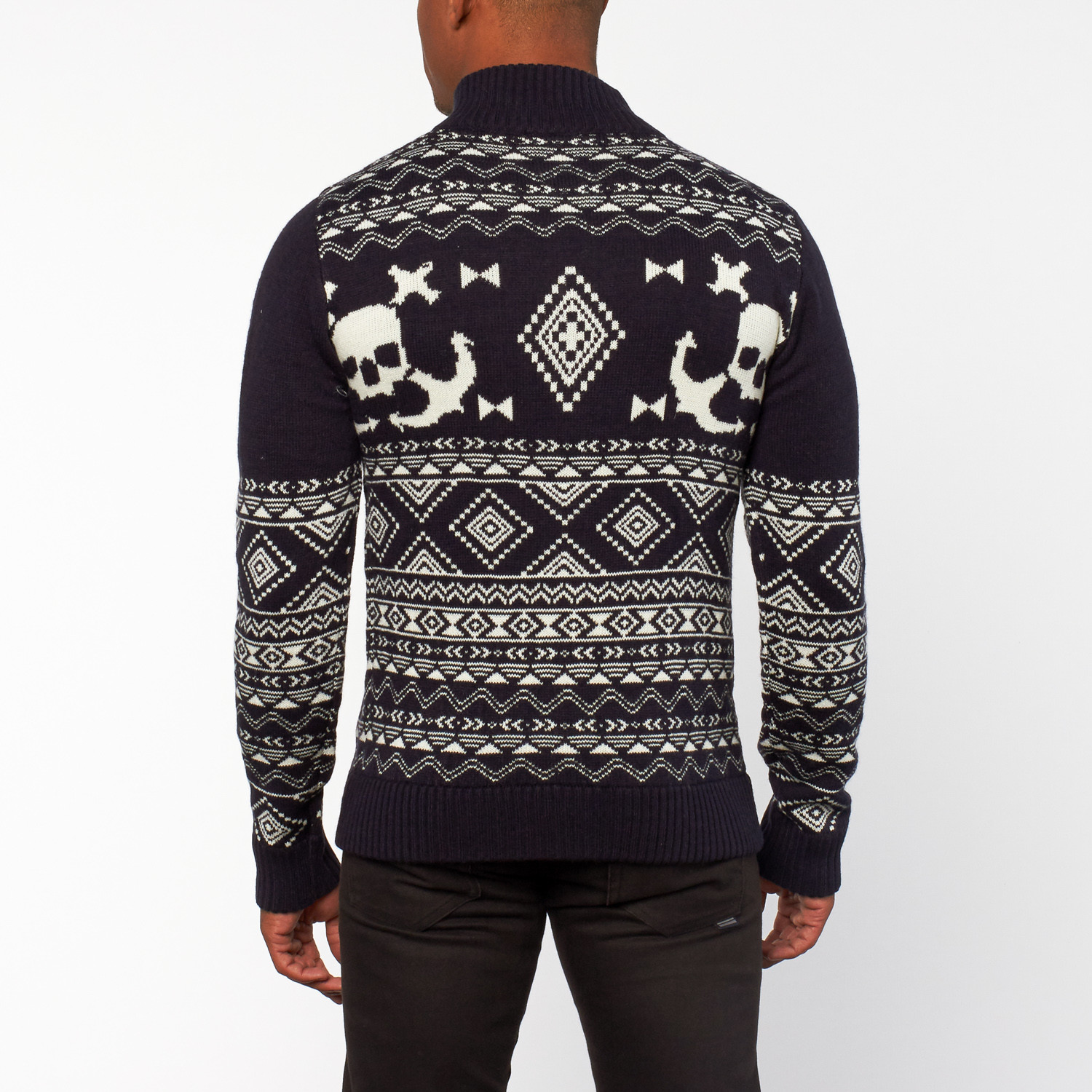 — Zip Front Intarsia Sweater