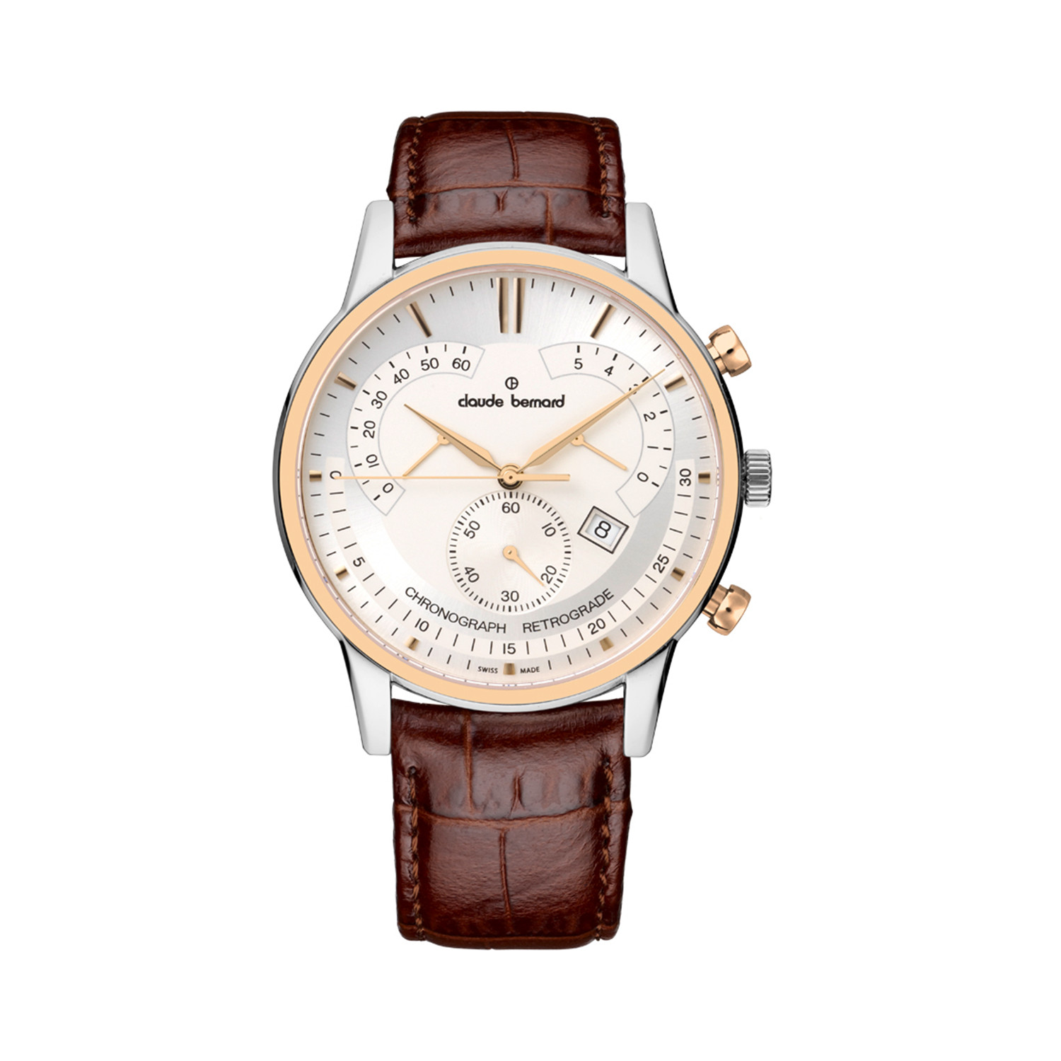 The Classic Retrograde Chronograph was crafted in Les Genevez, Switzerland, and is a piece of high-quality craftsmanship, distilling, as Claude Bernard has done for generations, all the experience and passion of Swiss watchmaking. It is sure to appeal to all classical design lovers, elegant aficionados, and fine timepiece addicts.