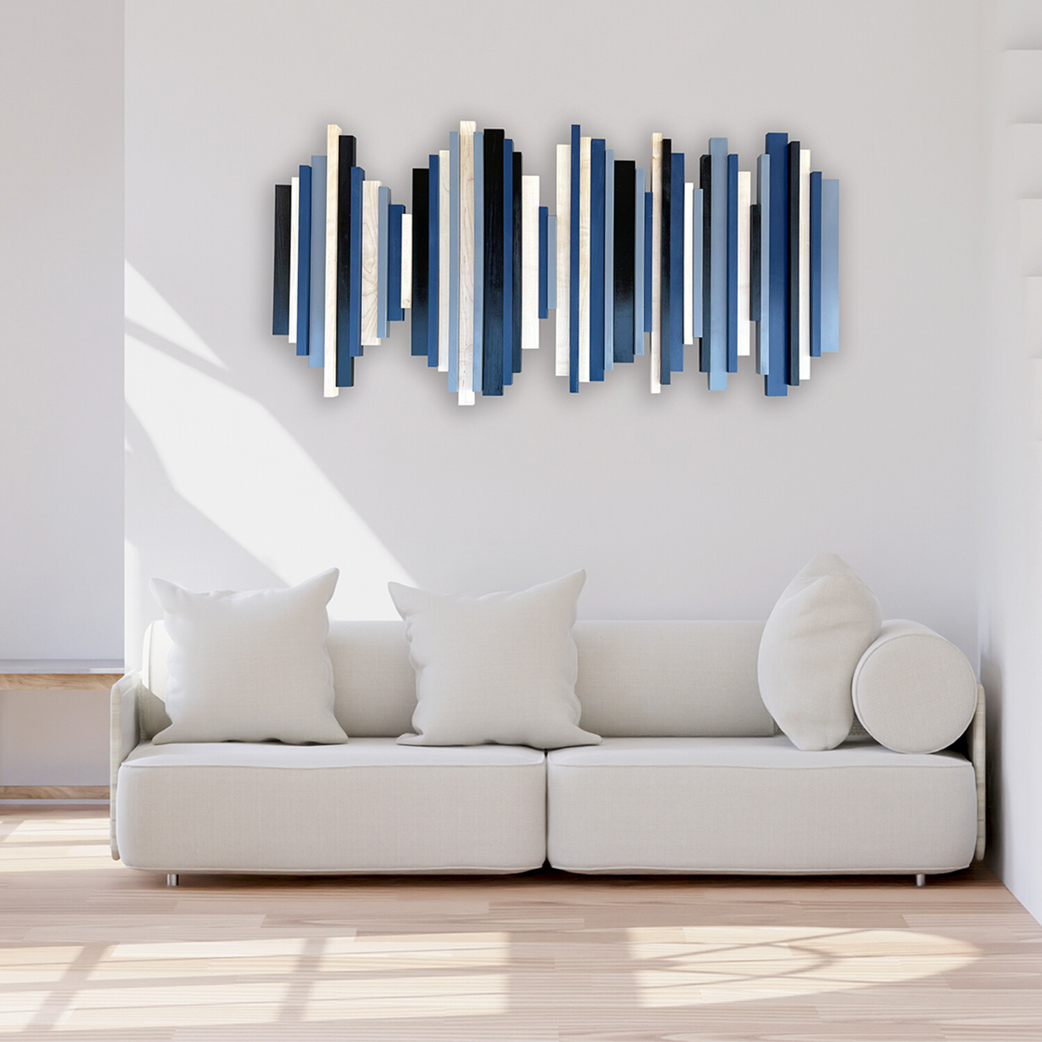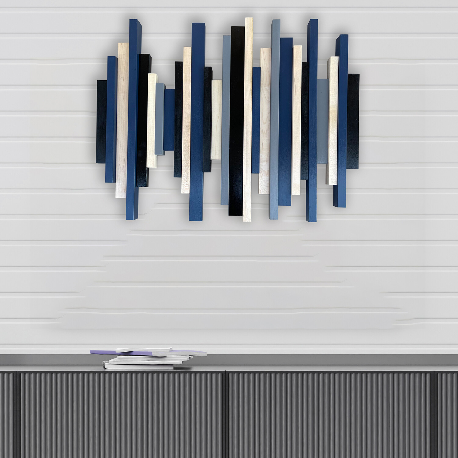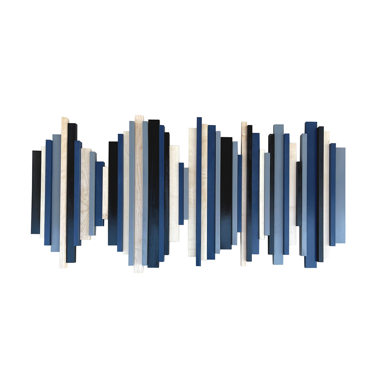 Claudia Moldovan’s art impresses, and then goes beyond to intrigue and initiate conversations. This wall sculpture represents the visual sound wave of a quote from The Wolf Of Wall Street, “Risk is what keeps us young." It is made from a collection of hard and soft woods, bold stains, and vibrant paint, and diligently captures every detail of the audio note. A statement piece for your home or office, the sculpture carries a composure that is modern and yet timeless.
