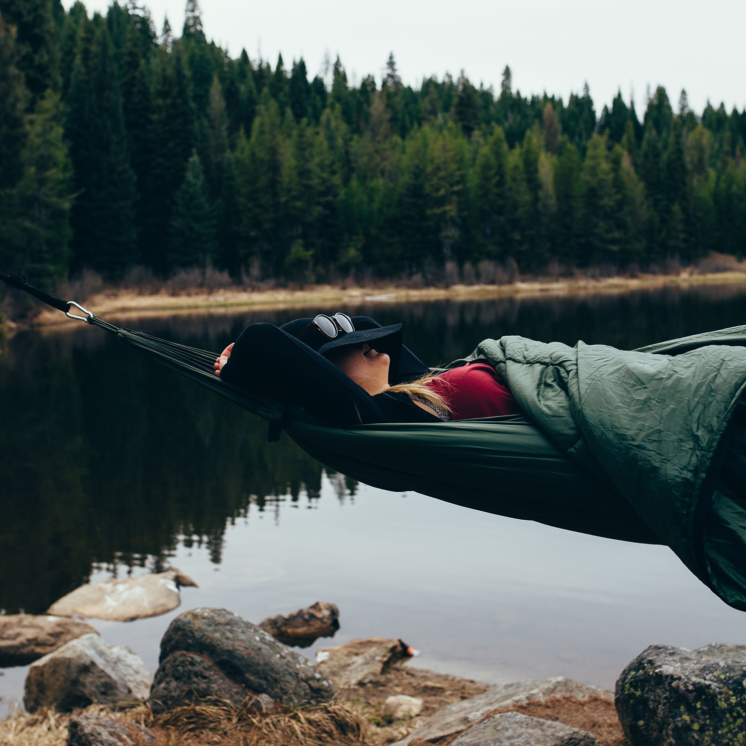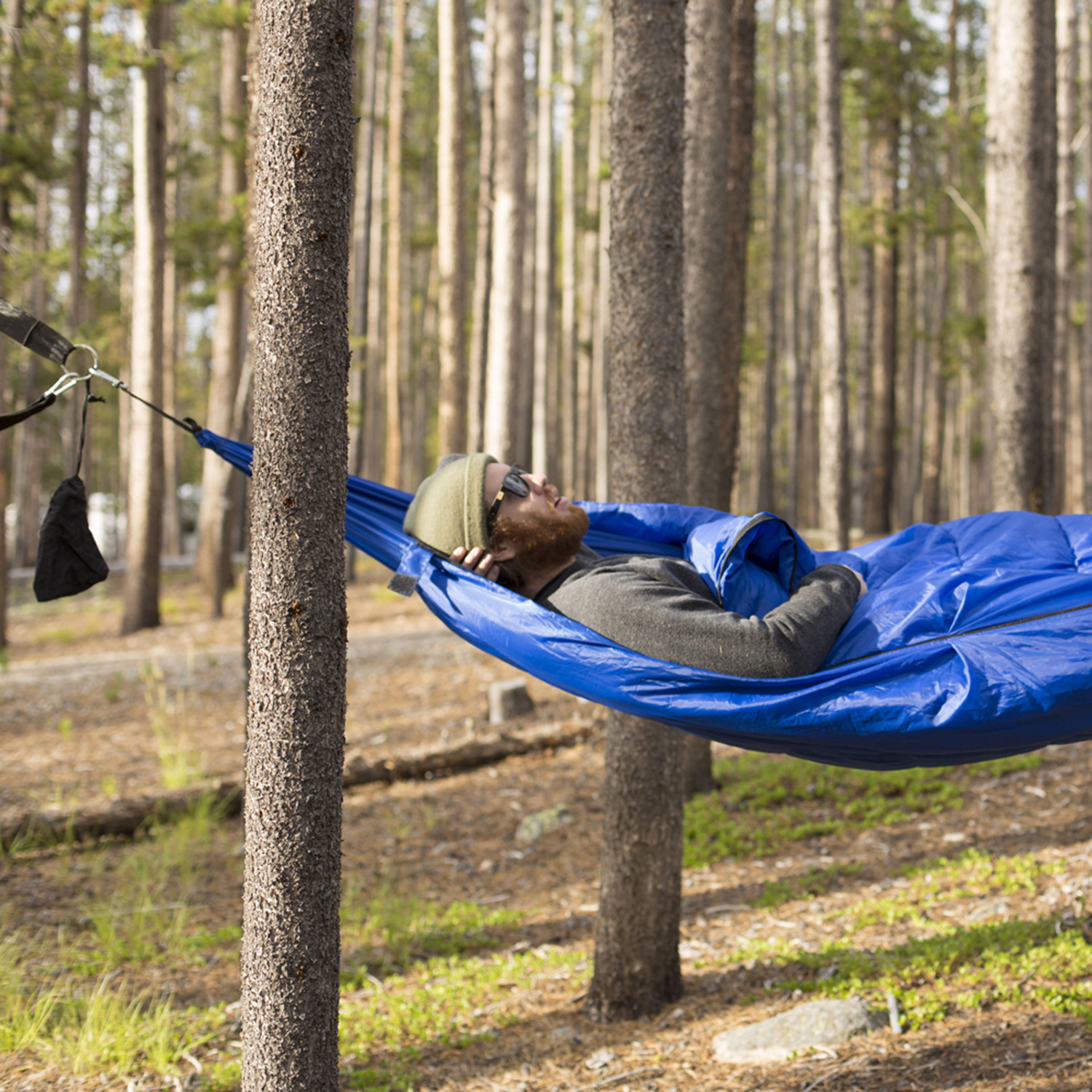 The Bison Bag wasn't just created for a great camping experience—it's also perfect for a comfortable backyard getaway or a relaxing accessory to take to the park. It circulates hot air to make sure you're warm and cushioned all throughout the night—no matter where you hang your bed. With polyester microfiber filling, the 55-degree bag is perfect for mild weather, and the hammock provides an added degree of comfort and fun.