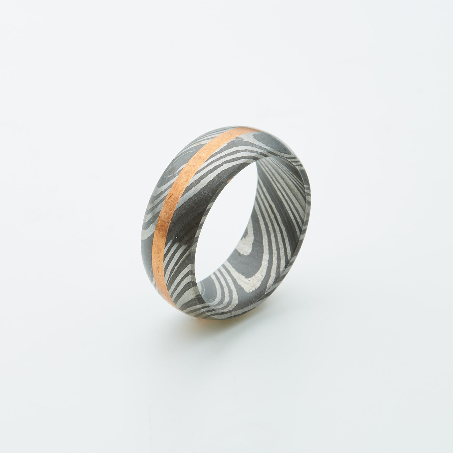 Deer Custom specializes in one of history's most enigmatic and mesmerizing materials: Damascus steel. Normally used to make knives and swords, these rings show off the unique patterns created during the forging process with a refined, masculine edge.