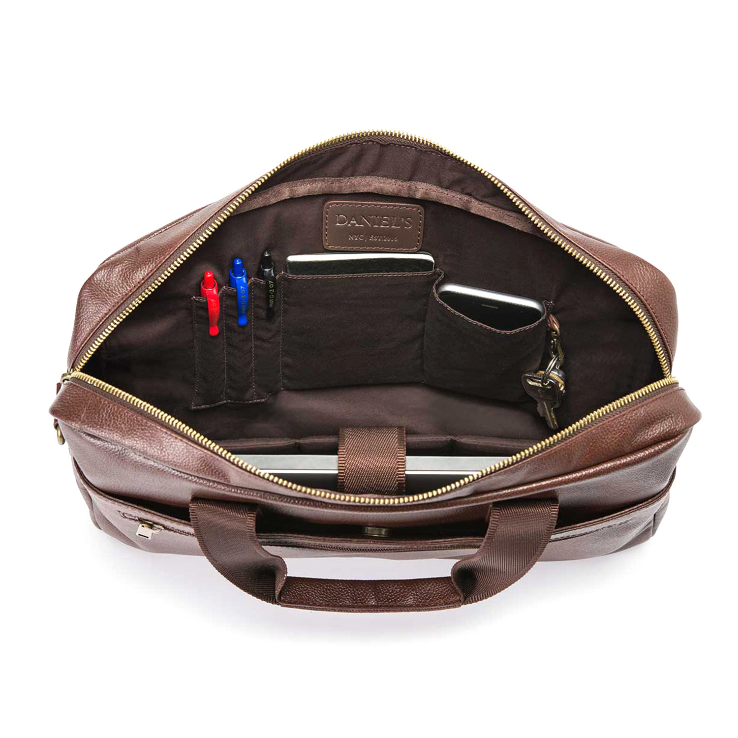 The Model No. 1 is everything you could ever want in a briefcase. An elegant leather construction combined with practical features like interior slots for your cell phone, business cards, or notebook make this your ideal everyday briefcase. An open, full-length exterior pocket allows convenient access to your favorite newspaper or favorite novel, while a spacious interior compartment with a latched and padded laptop separator keeps your laptop protected and in place. Thoughtful details like an interior key hook, magnetic tab closures, and three pen slots perfect for Pilot G-2’s will leave you wondering how you ever left home without it.