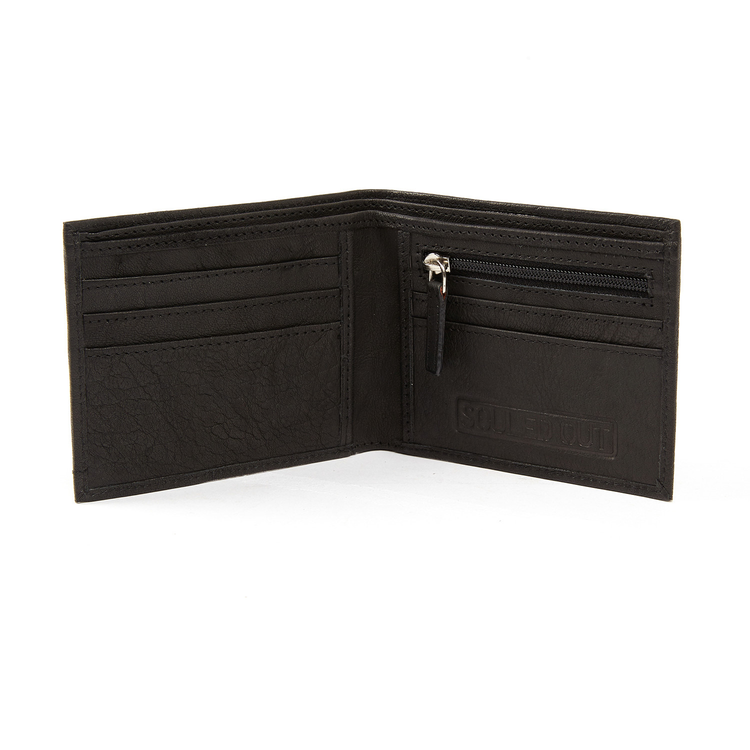 This soft black leather wallet is classy pick for everyday carrying. Zip and contrast detailing make it a standout.