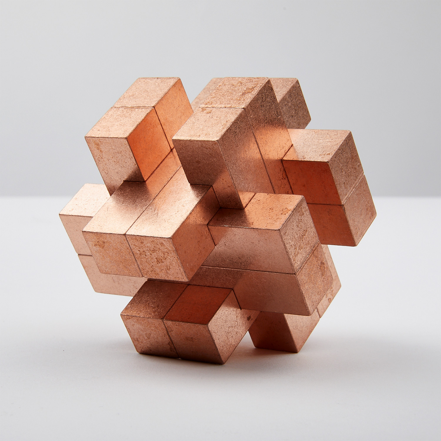 Brilliantly metallic, it's hard to take your eyes of this Trance Copper Vault. It features a stunning architectural design inspired by mortise and tenon joints — an ancient wood joinery technique dating back 7,000 years. This unique design holds the form together with seemingly impossible strength, however a single key element holds the secret to solving the puzzle.