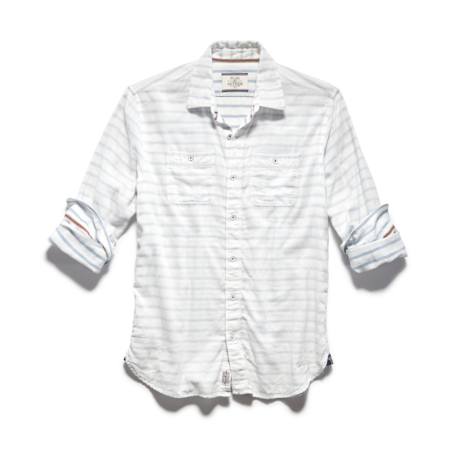 Double Layer Reverse Stripe LS Shirt // White (2XL)