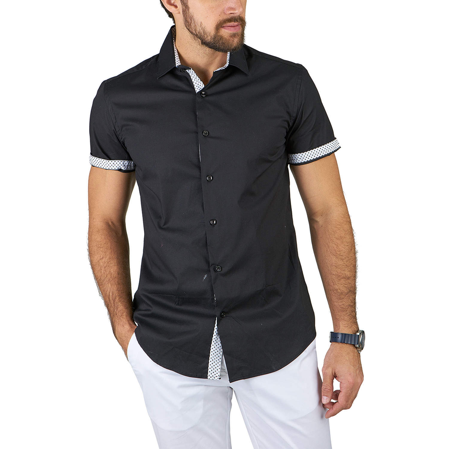 — Contrast Trim On Inner Cuff & Collar