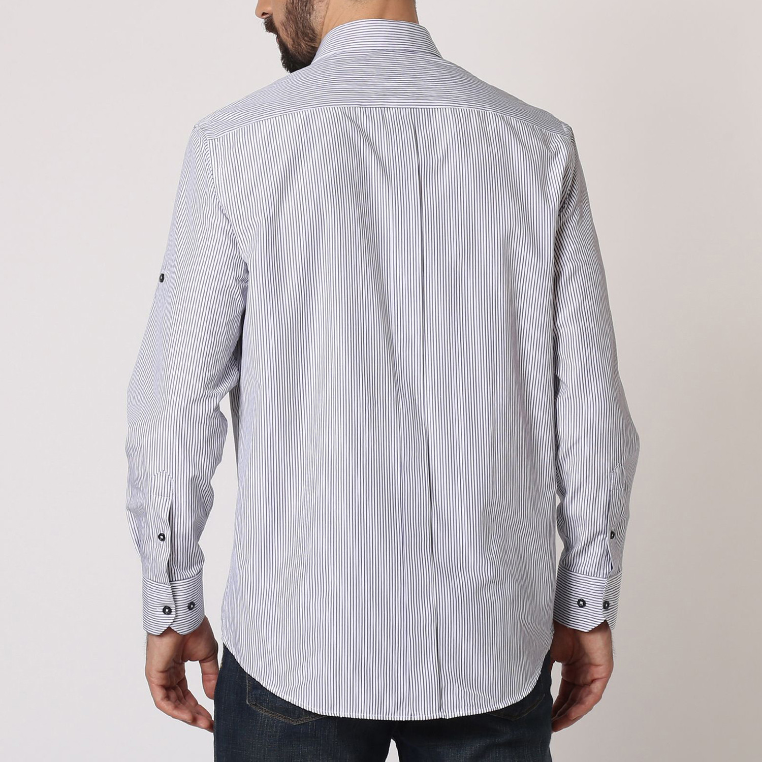 L/S Striped Woven W/ Hidden Placket // Navy (XL)