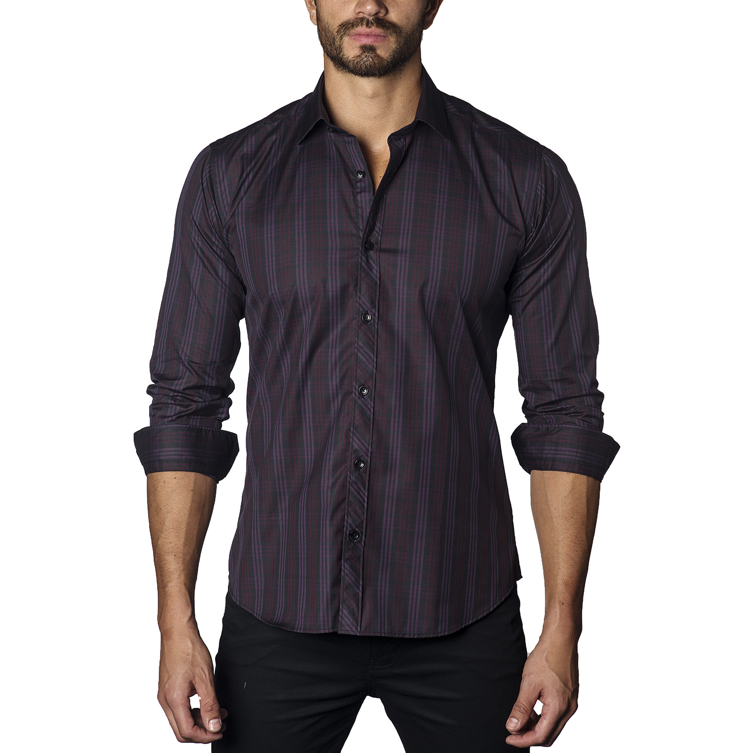 Plaid Long Sleeve Shirt // Plum (XL)