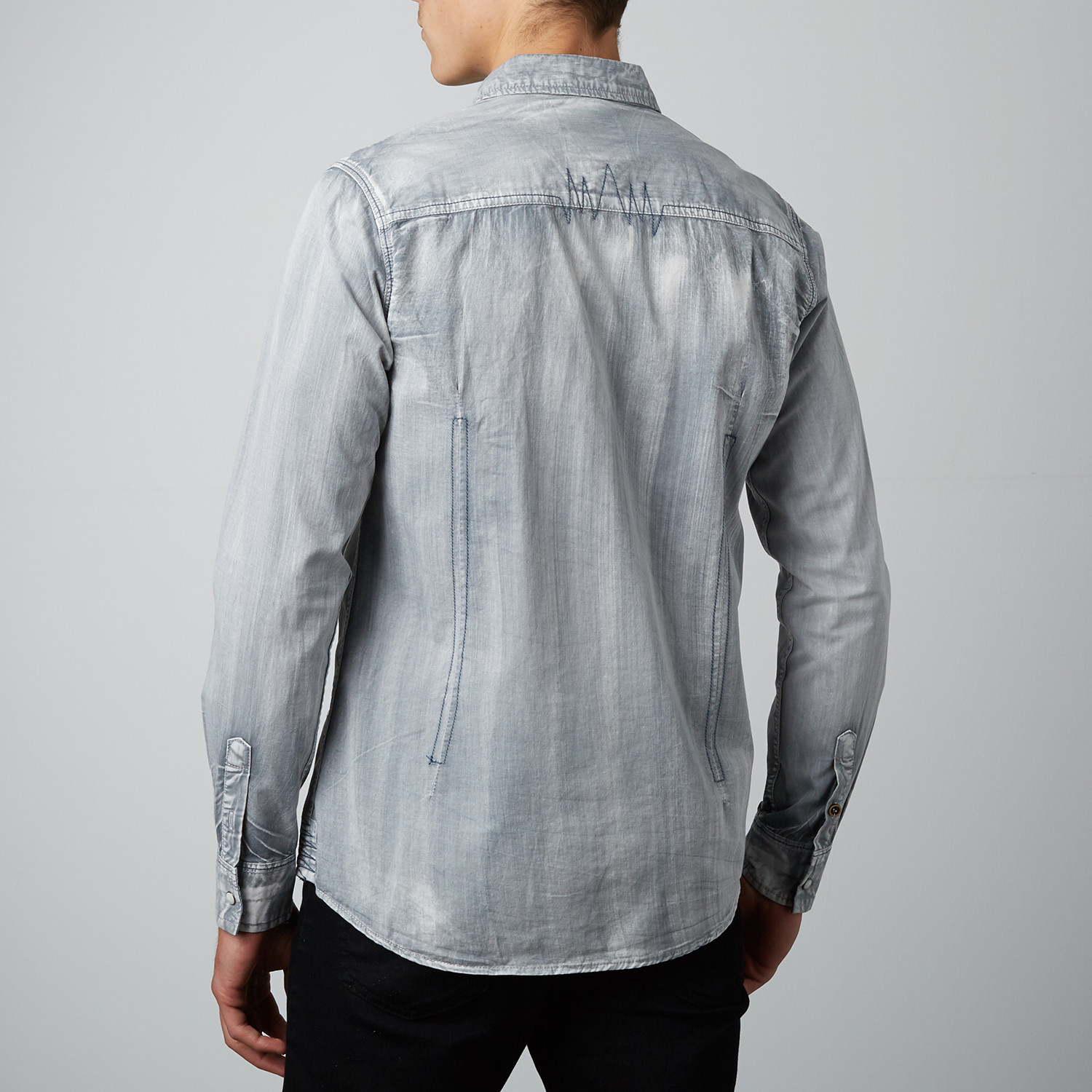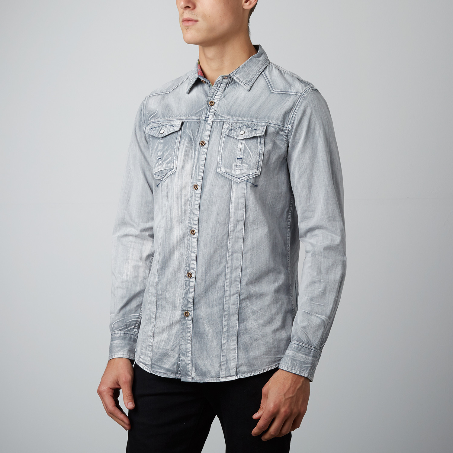 Western Edition Slim Fit Denim Shirt // Grey + Blue (XL)