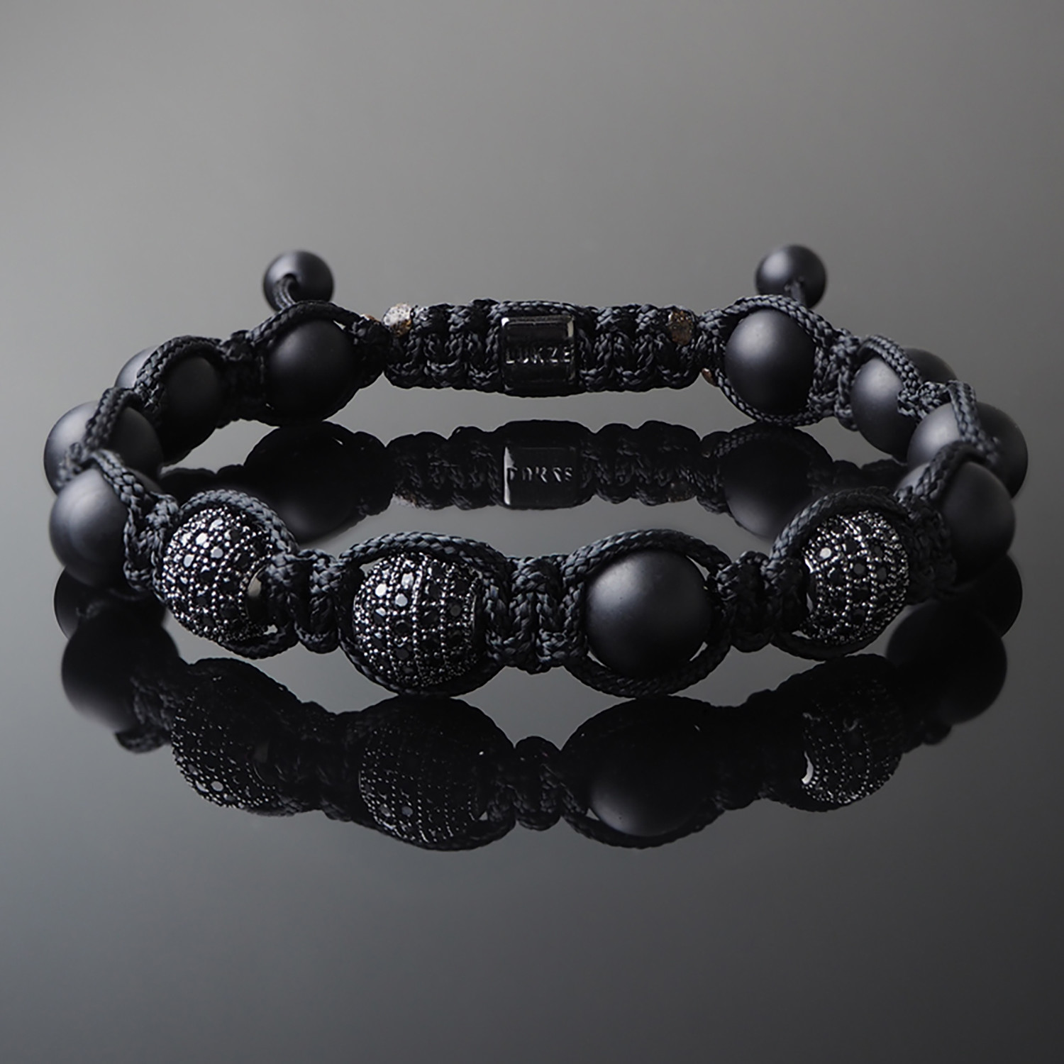 Frosted Onyx Gemstones, 925 Sterling Silver, Cubic Zirconia Diamonds, Nylon Thread