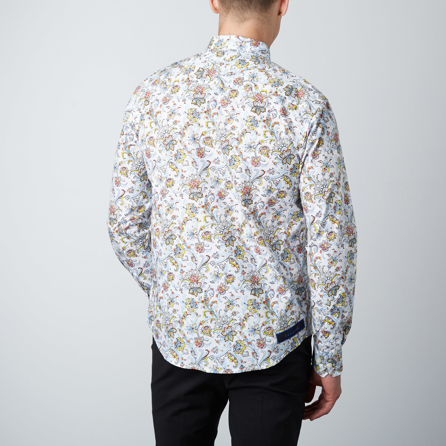 Floral Paisley Button-Up Shirt // White + Red (L)