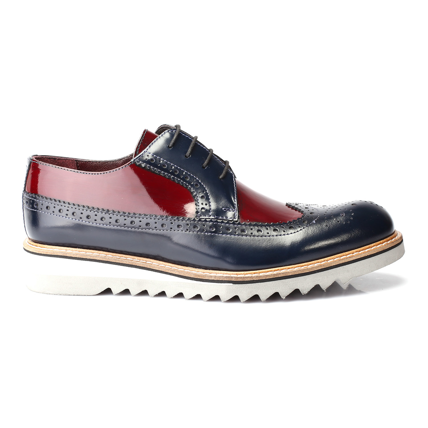 Serkan Patent Colorblocked Longline Wingtip Platform Derby // Dark Blue + Bordeaux (Euro: 42)