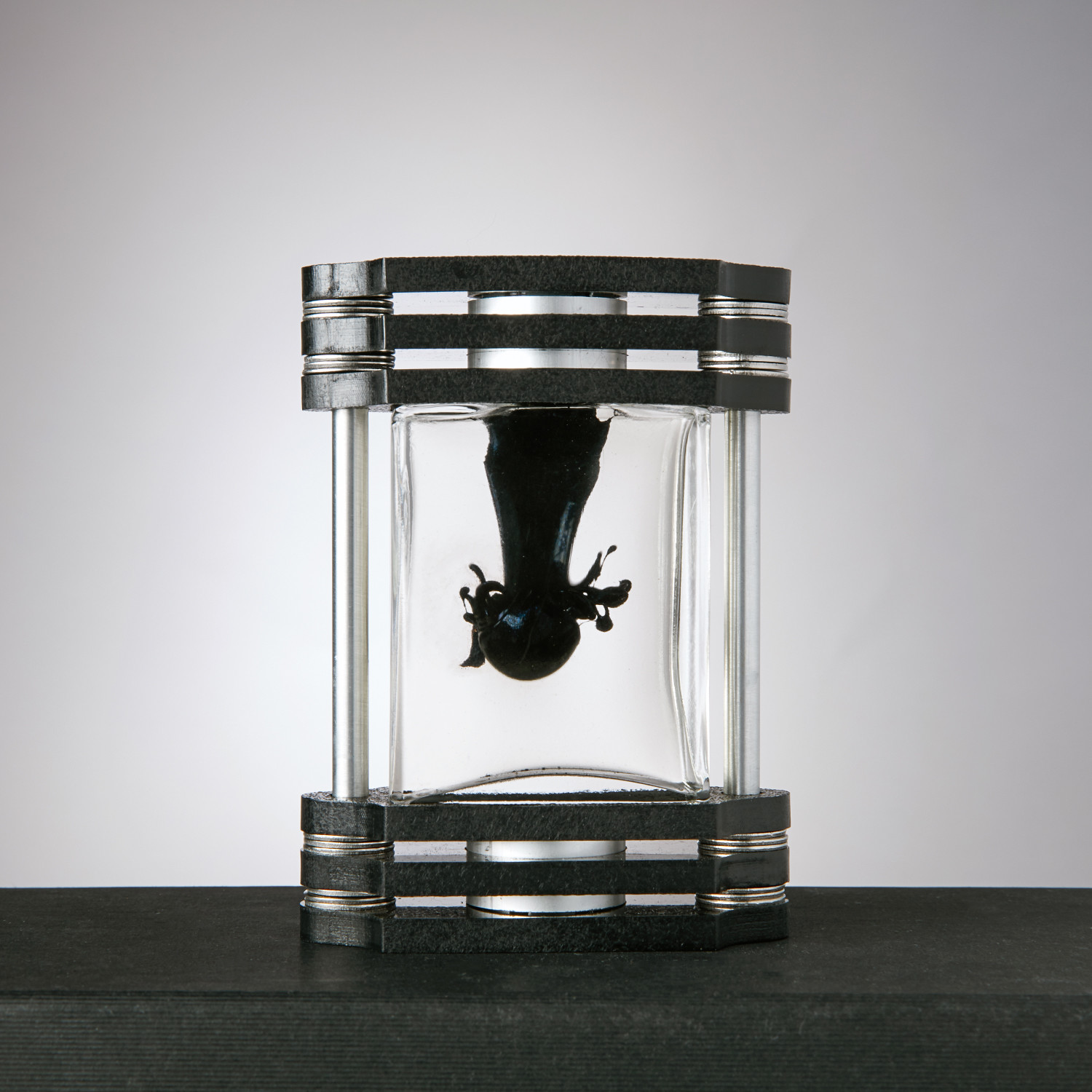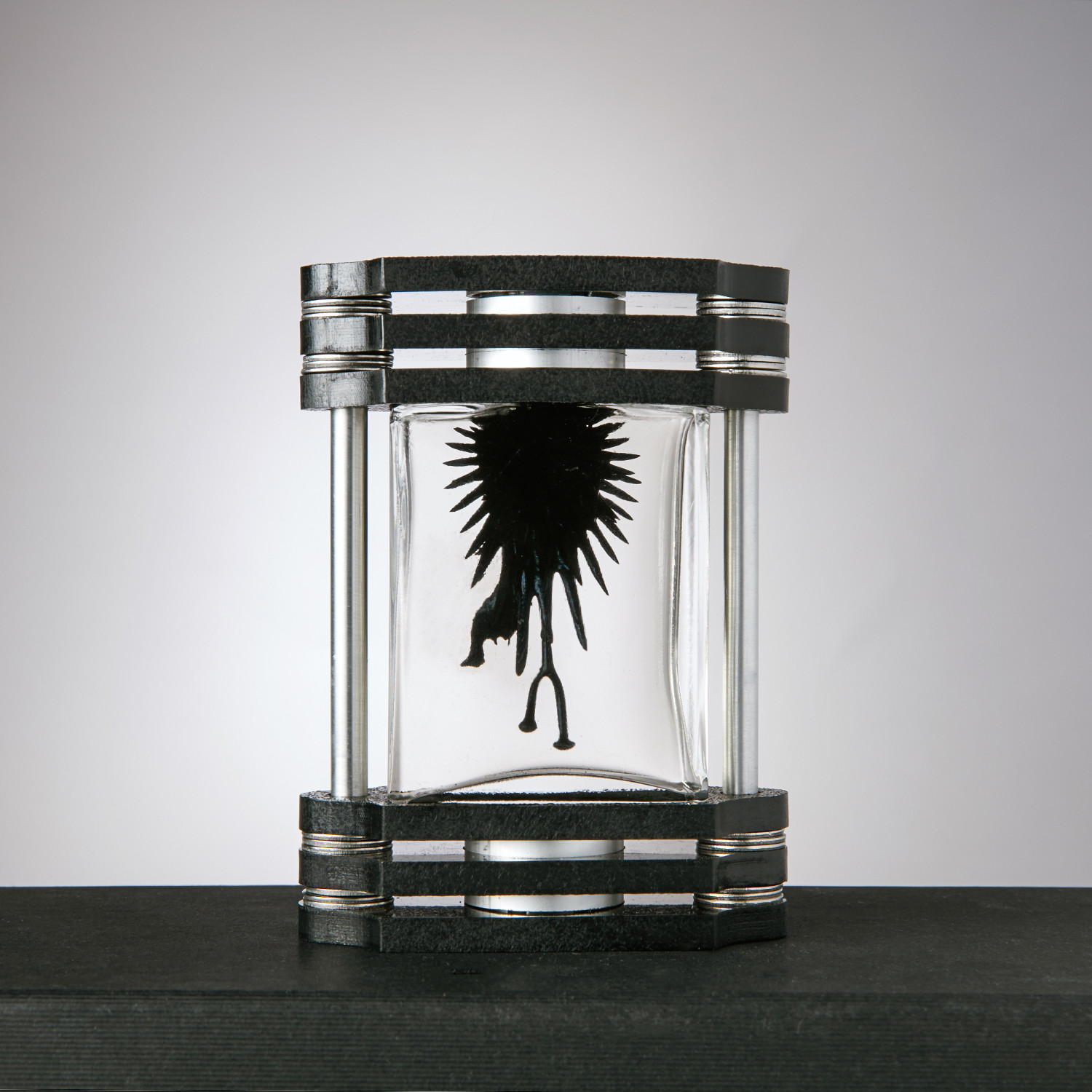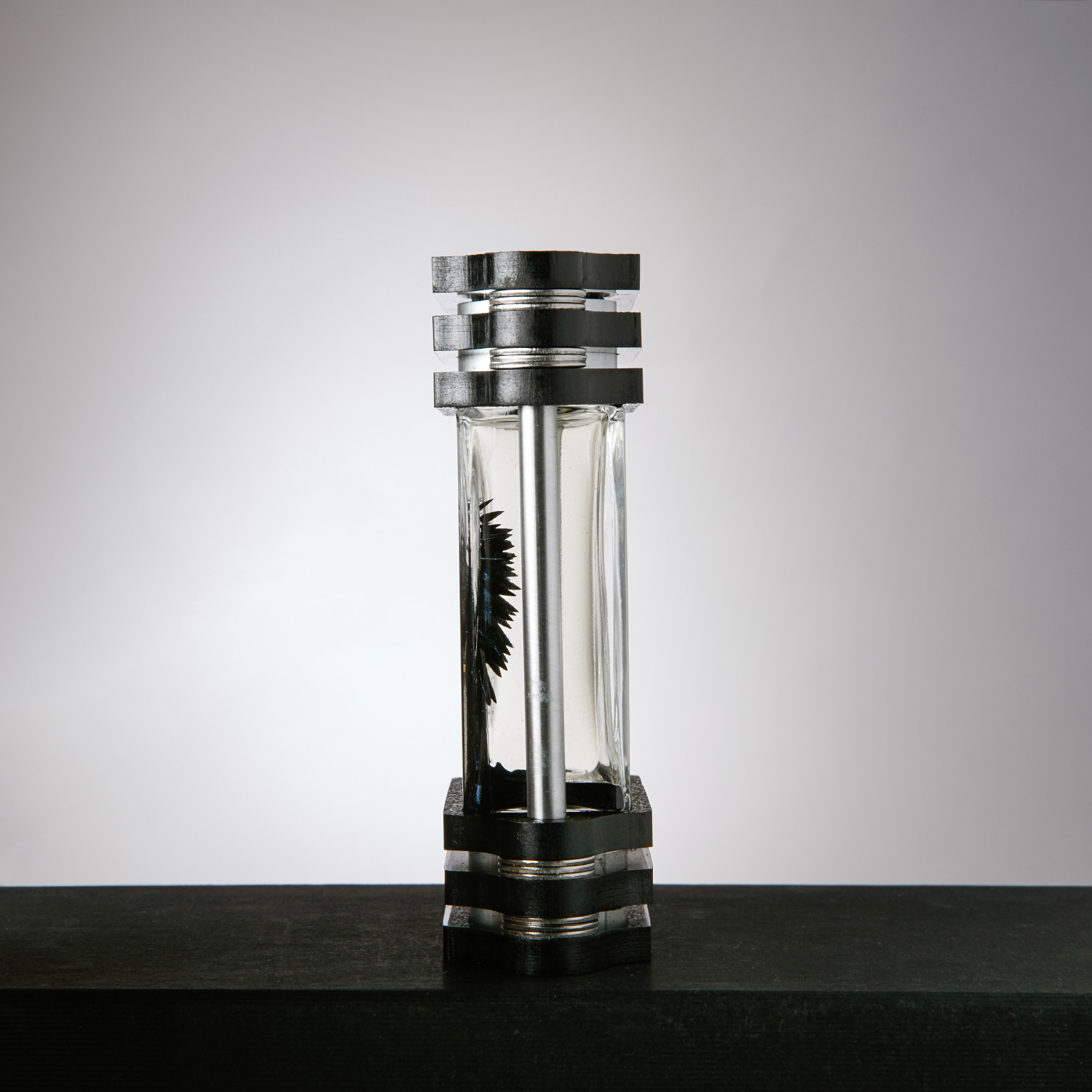This display represents the latest in colored ferrofluid technology. Featuring colored ferrofluid immersed within a highly-tuned clear suspension liquid, the Quantum will occupy a dominant place on your desk, bookshelf, or in a science display booth.