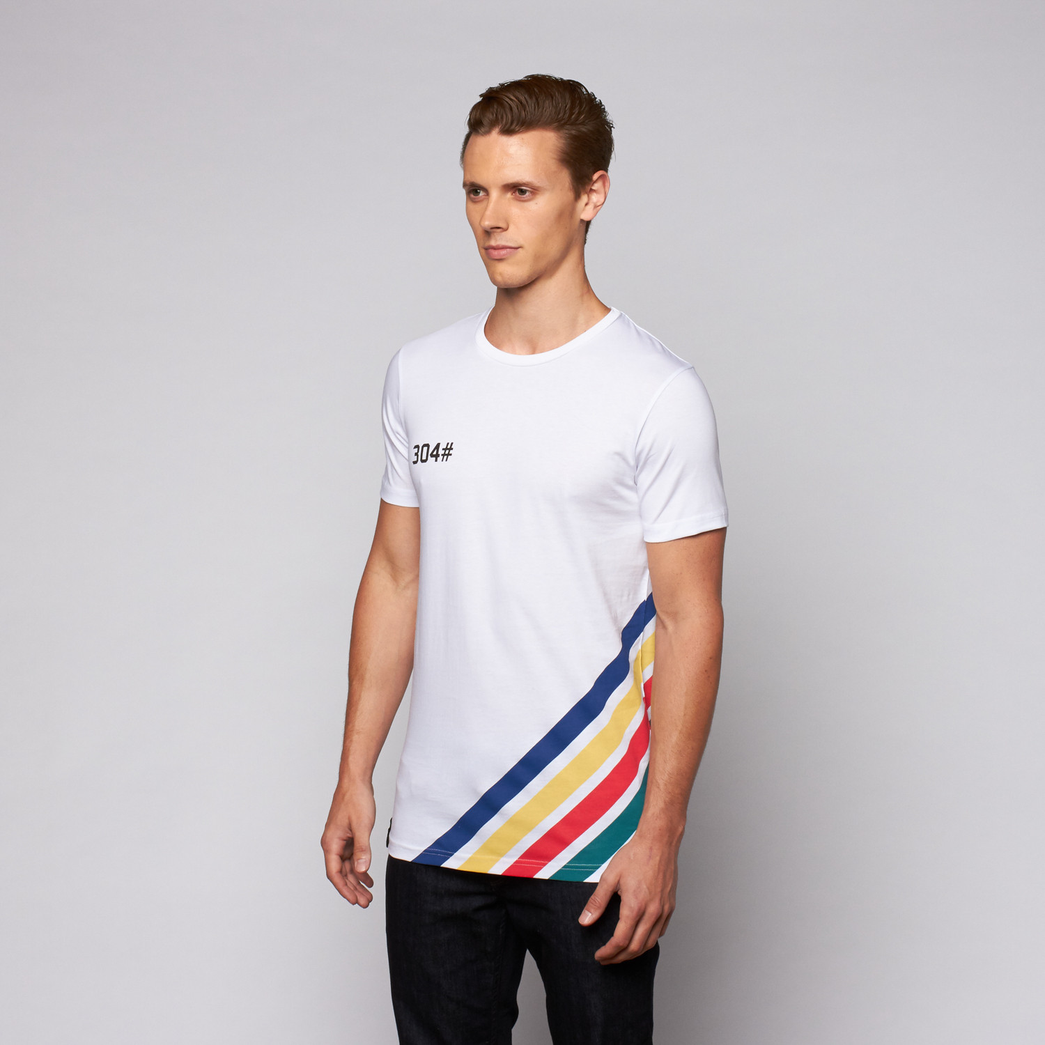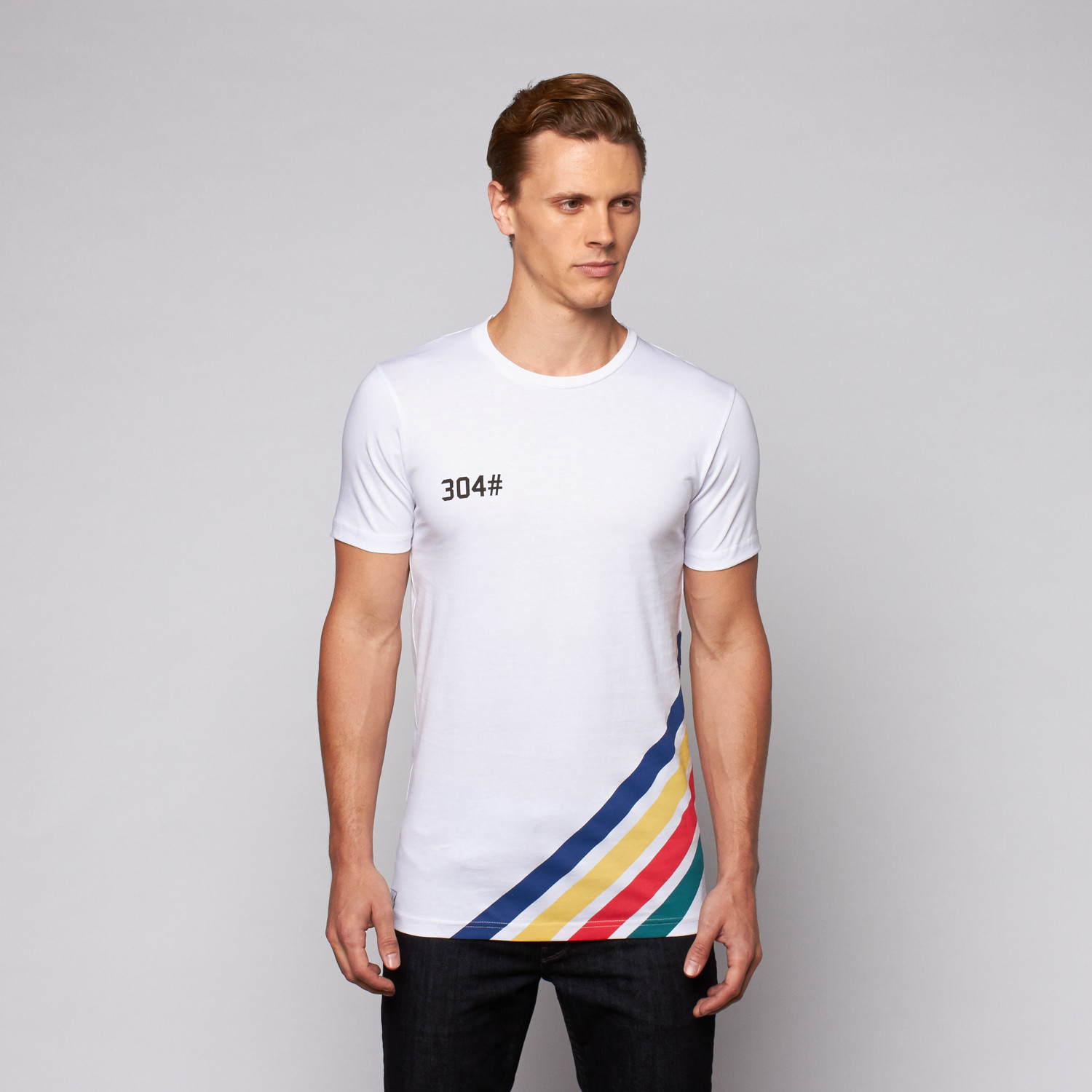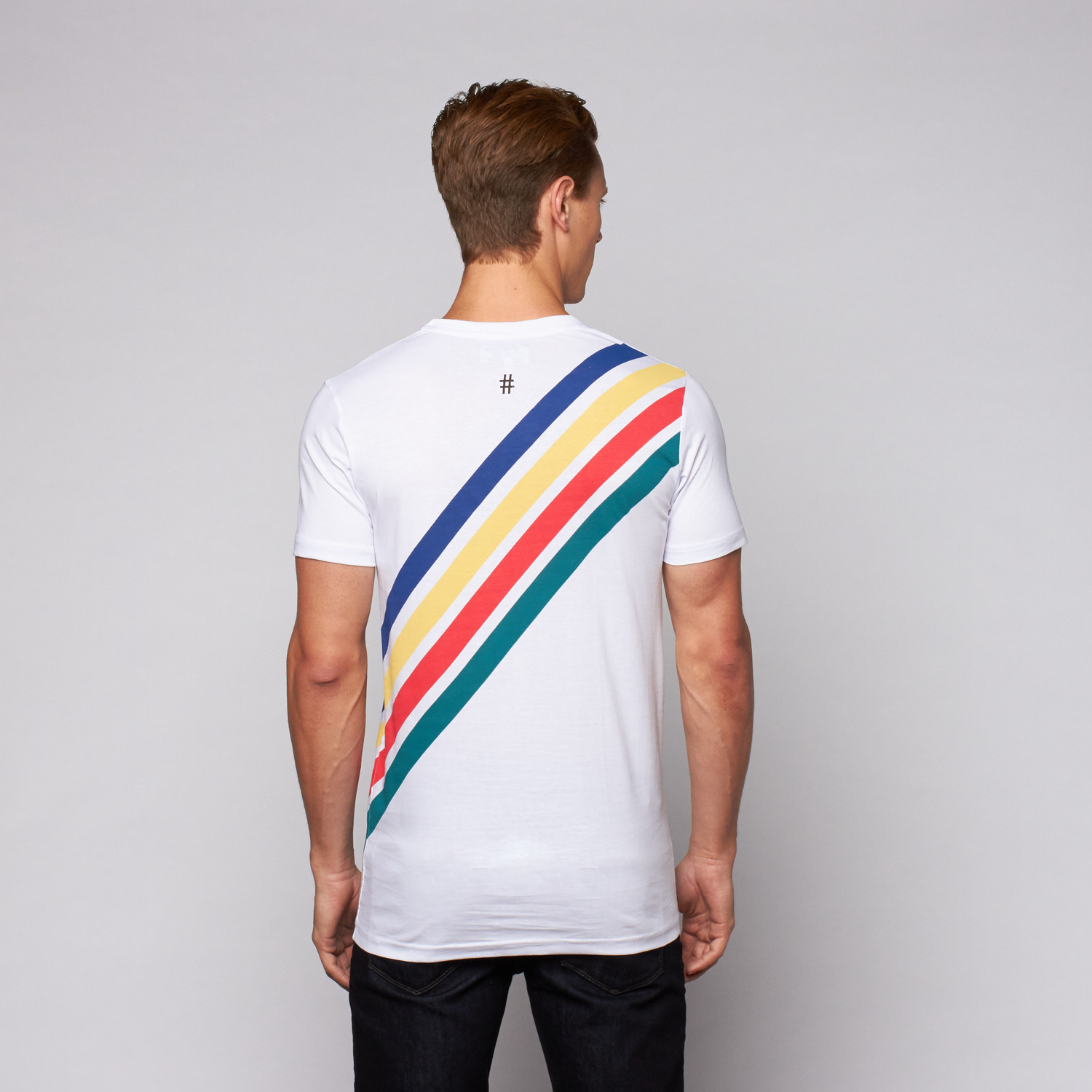 A regular fitting tee with retro stripes diagonally printed across the front and back of the tee, the 1987 Heritage Tee is made from premium yarn cotton that provides a regular and comfortable fit.