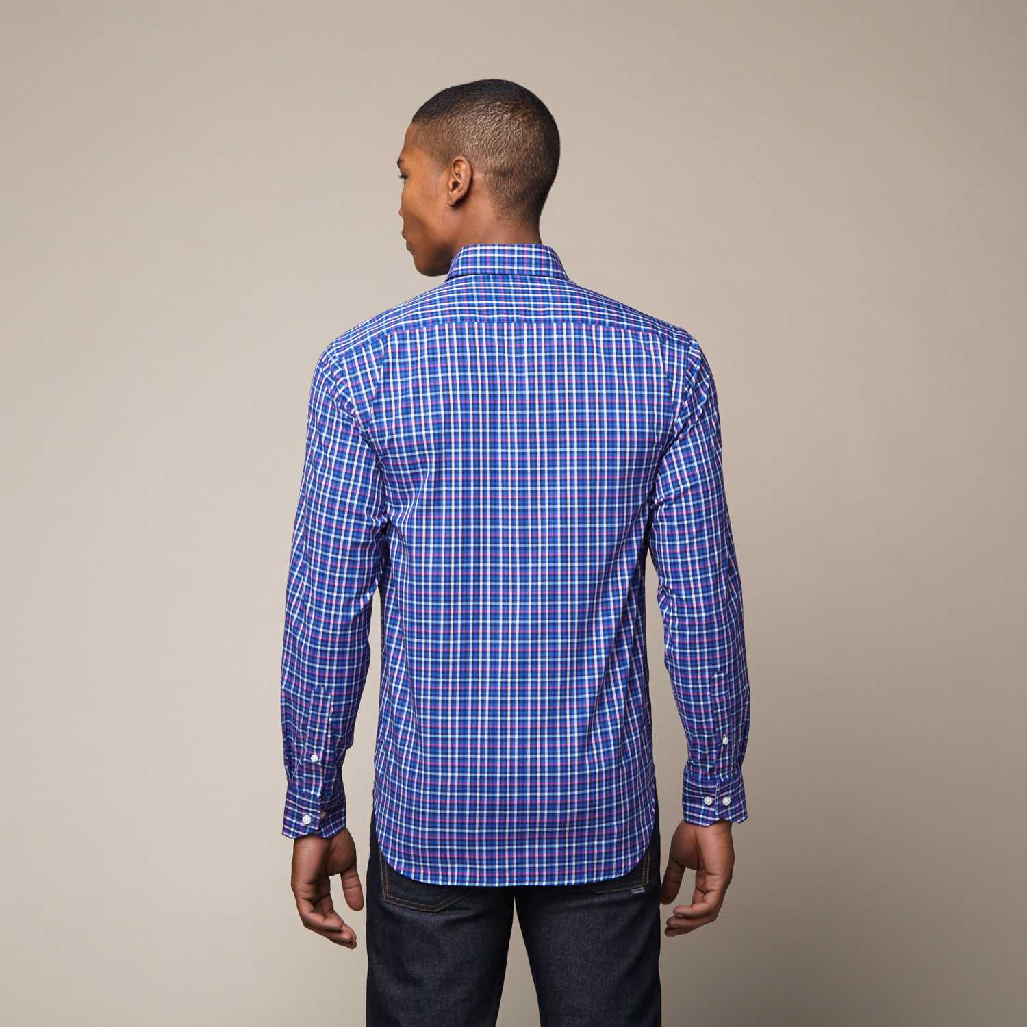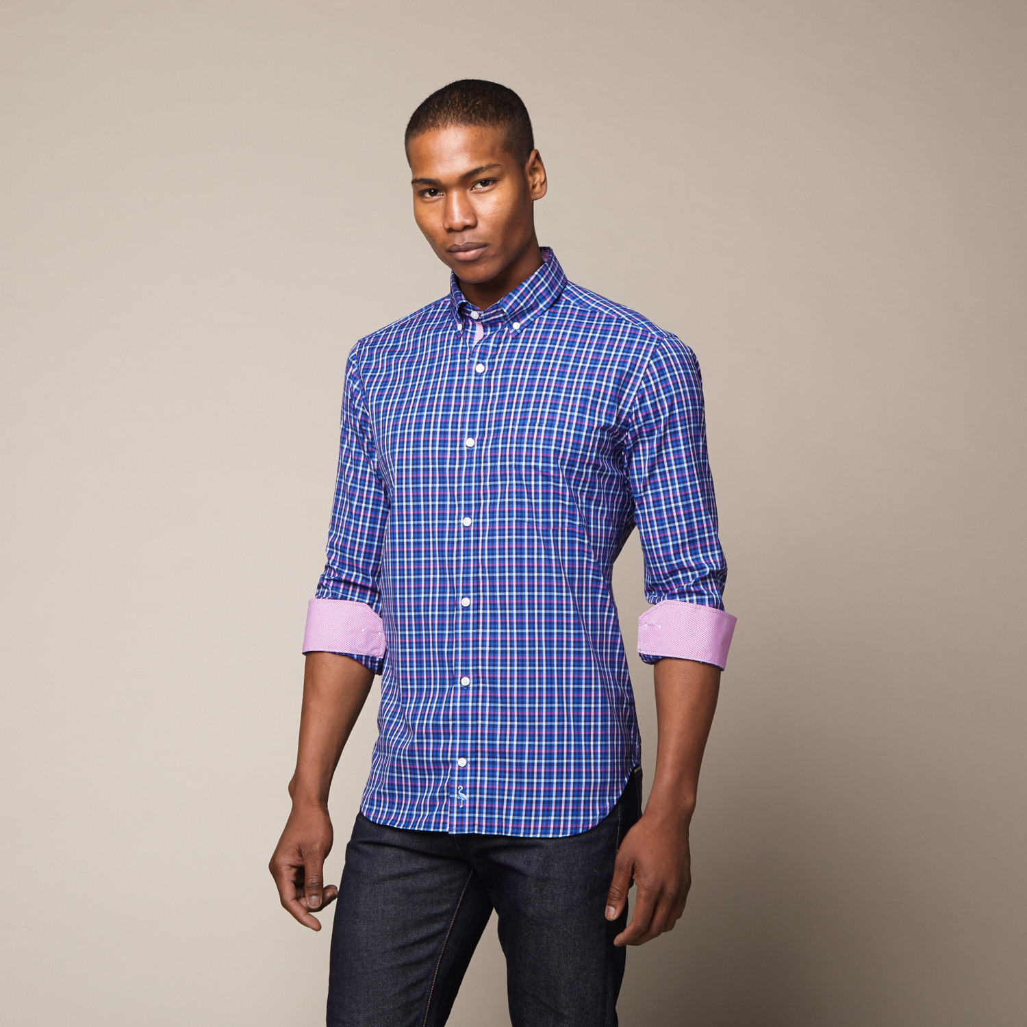 — Contrast Microplaid Trim on Inner Cuffs and Placket