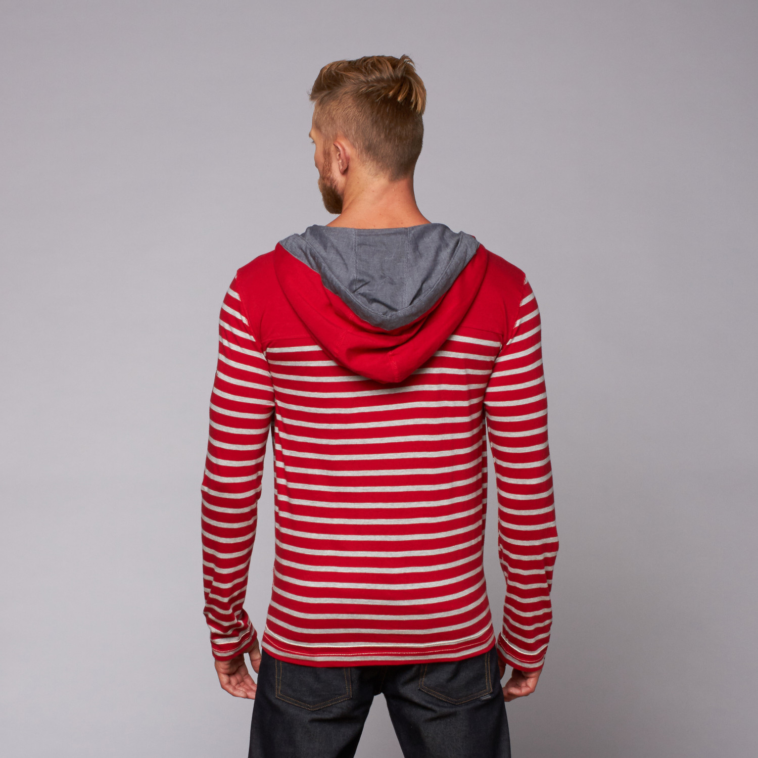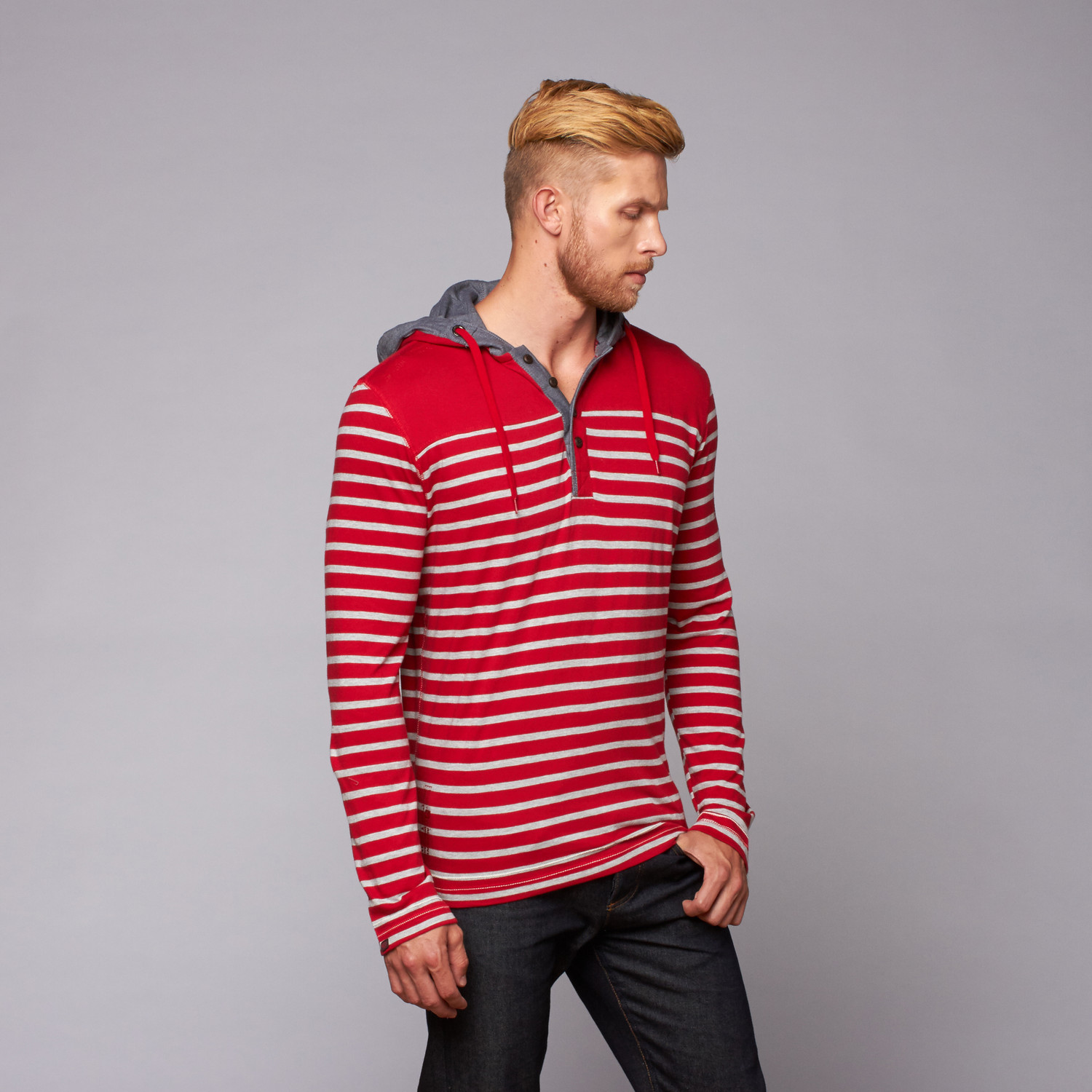 This Hooded Stripe Jersey Henley puts you above the daily fray. Great for chilly mornings, this hooded henley boasts contrast trimming for amazing effect.
