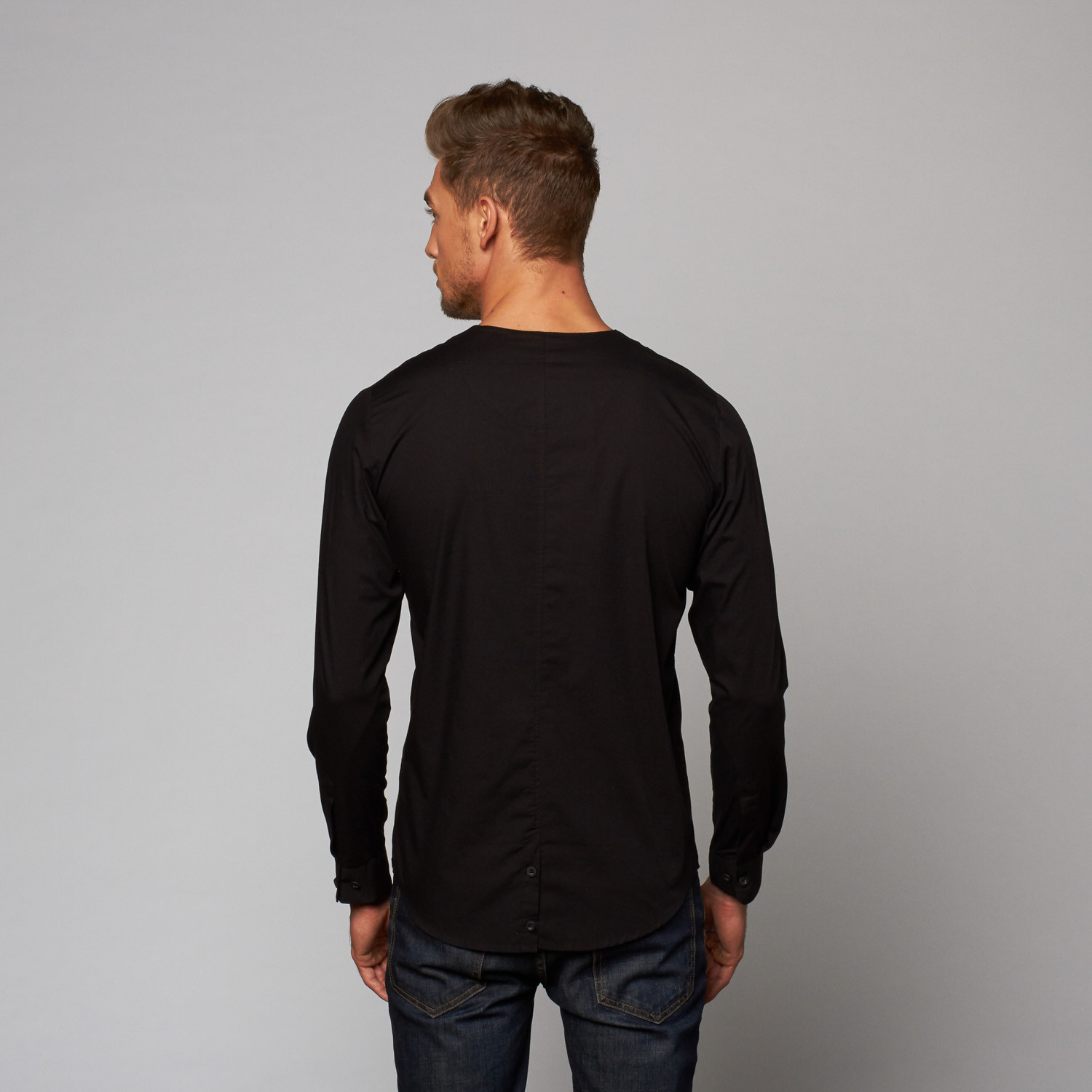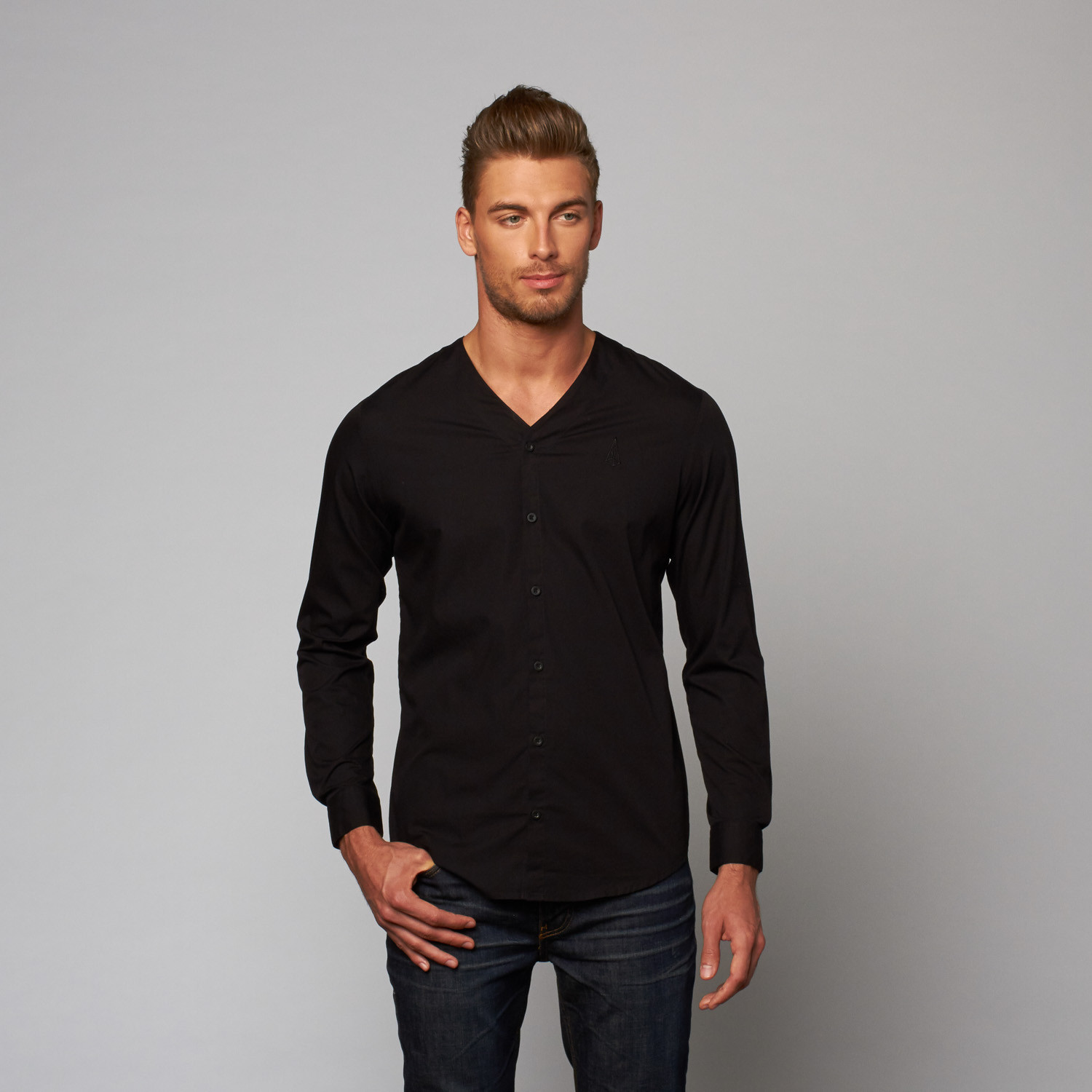 The Luca V-Neck Shirt turns the tee on its head. Constructed of tailored poplin, it boasts a buttoned front and back hem for a truly unique look.