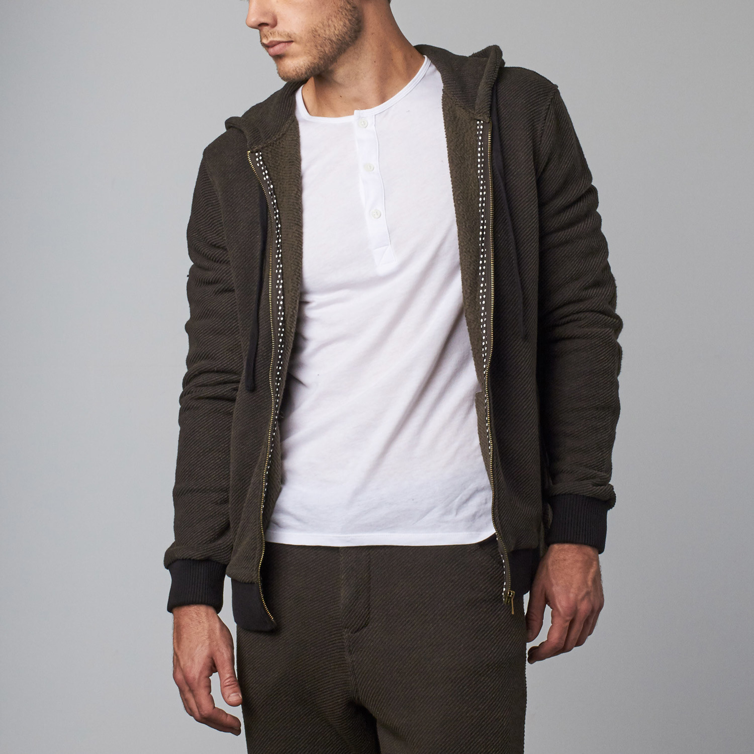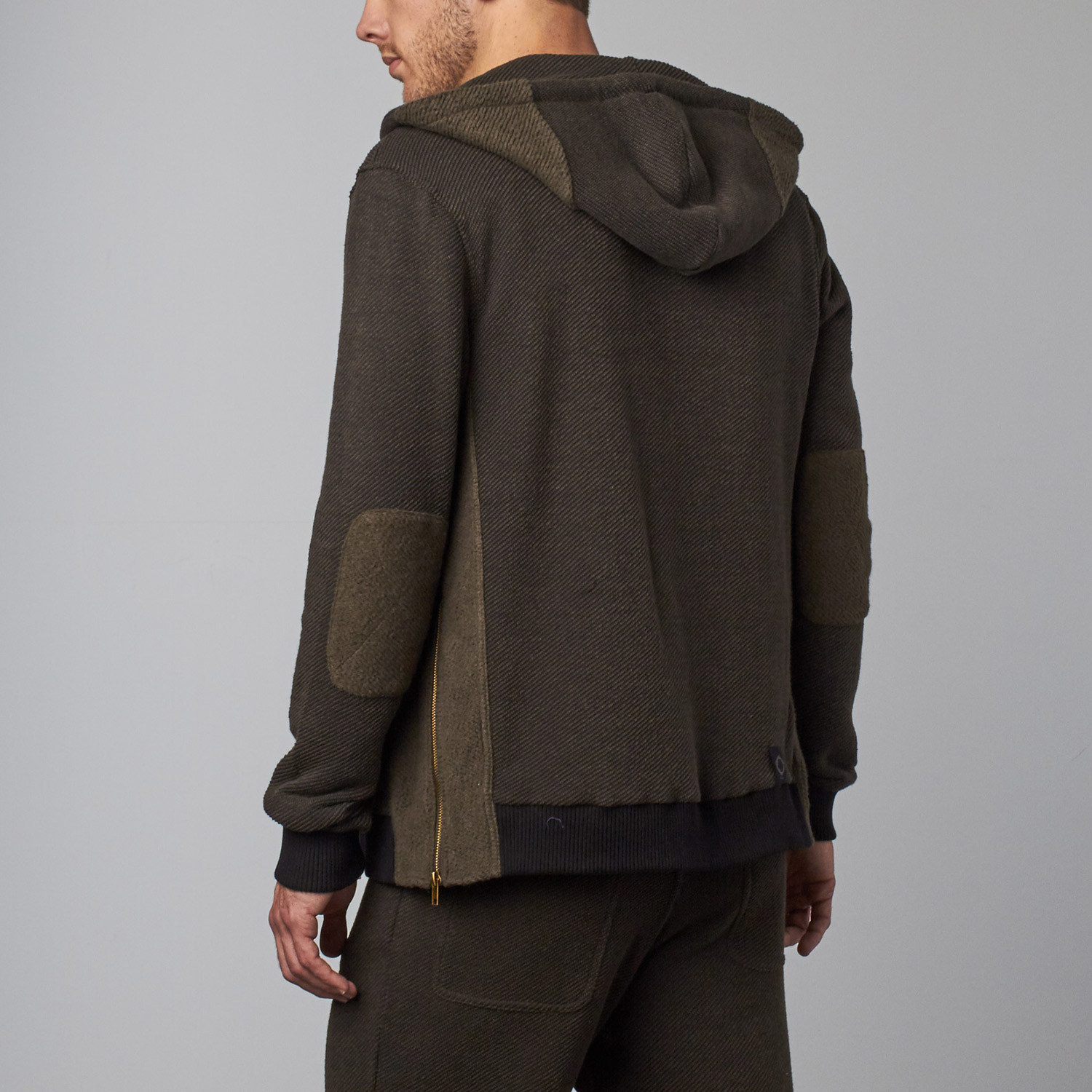 The Malo Zip Hoodie is a laid-back triumph. Never losing its dark undertones, the contrast black ribbing and elbow patches really elevate its look.