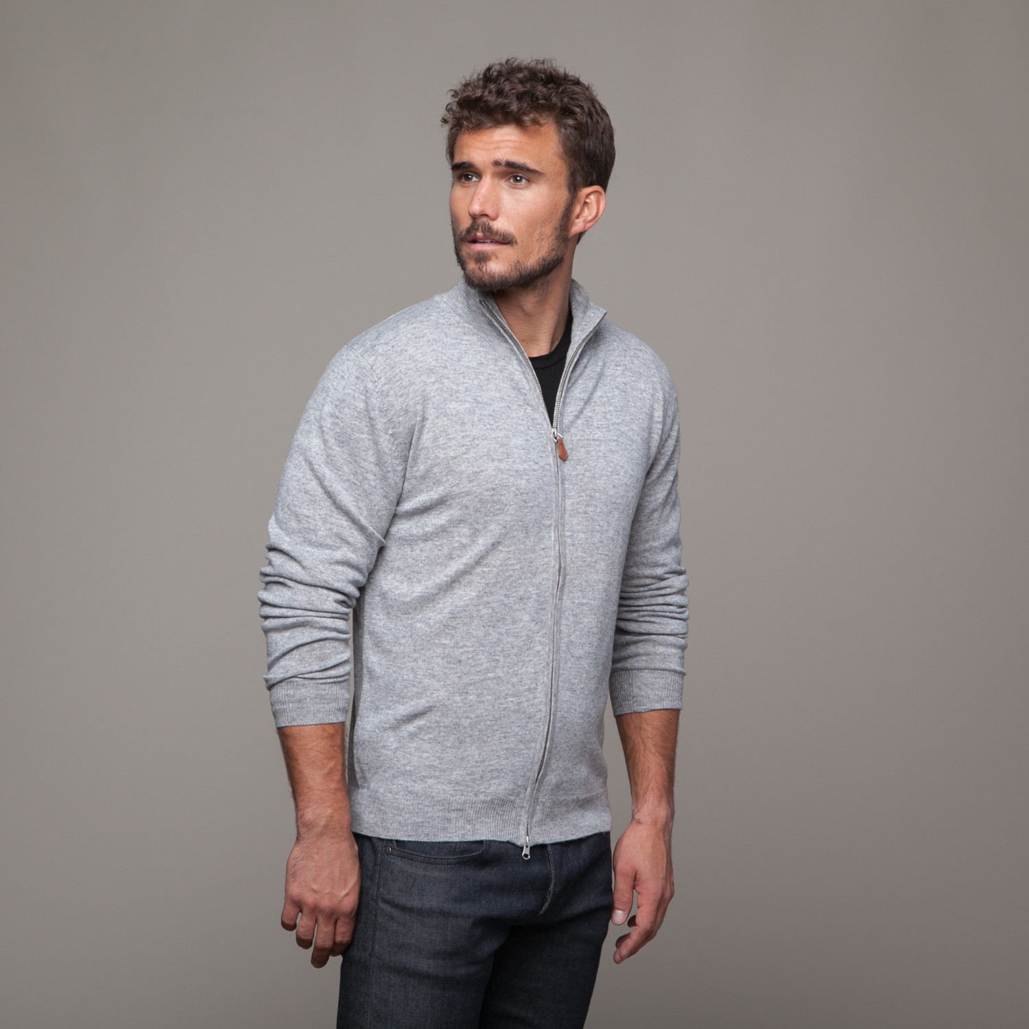 The ideal sumptuous basic, this Merino and Cashmere Cardigan Zip is perfect for layering over shirts and under sportcoats. Made with the finest yarn in a merino-cashmere blend, it's an essential addition to a winter wardrobe.