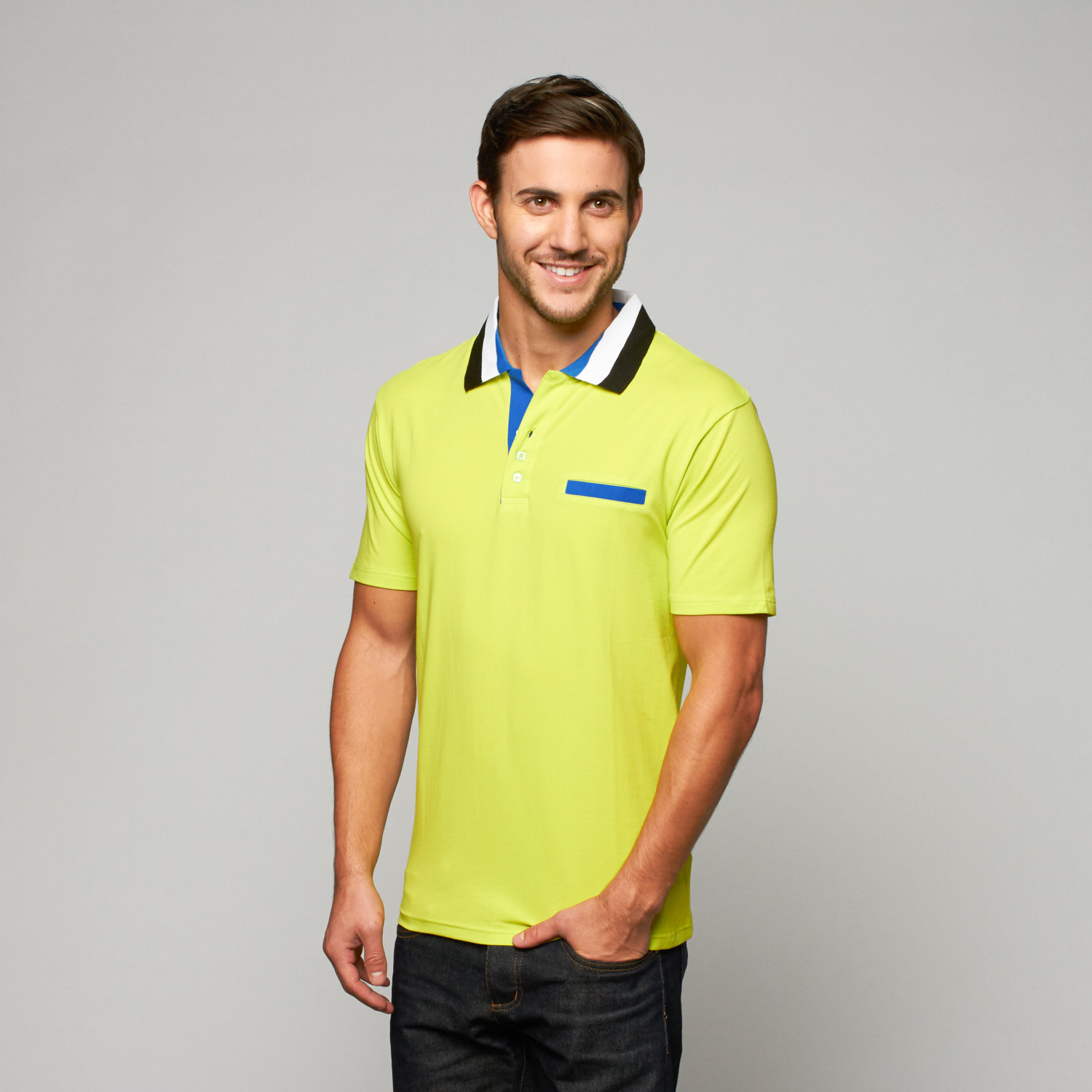 This Pocket Pique Polo is a preppy classic with a colorful twist. Perfect for the golf course and daytime occasions, its pique cotton body boasts a colorful, triple stripe collar, a custom-placed button placket, and a contrast welted chest pocket.