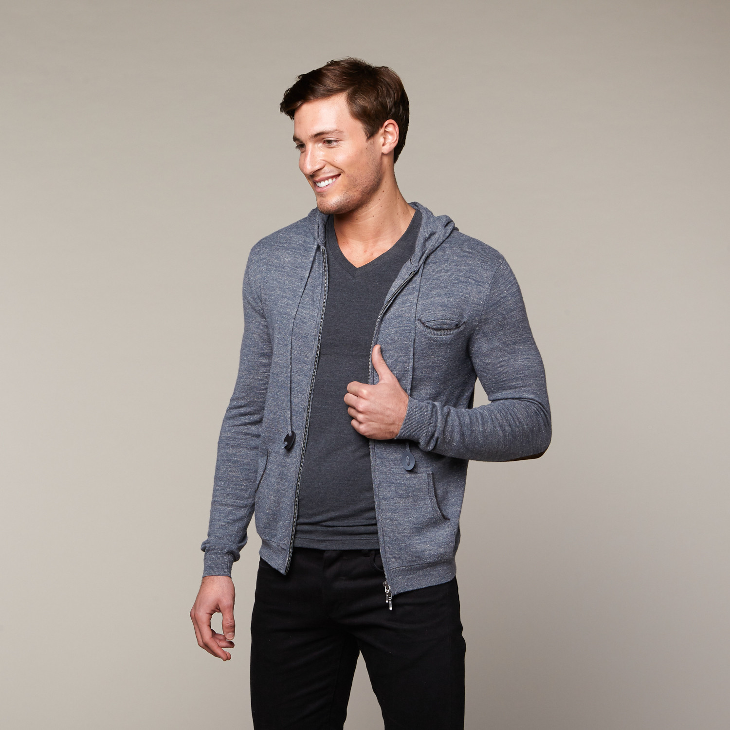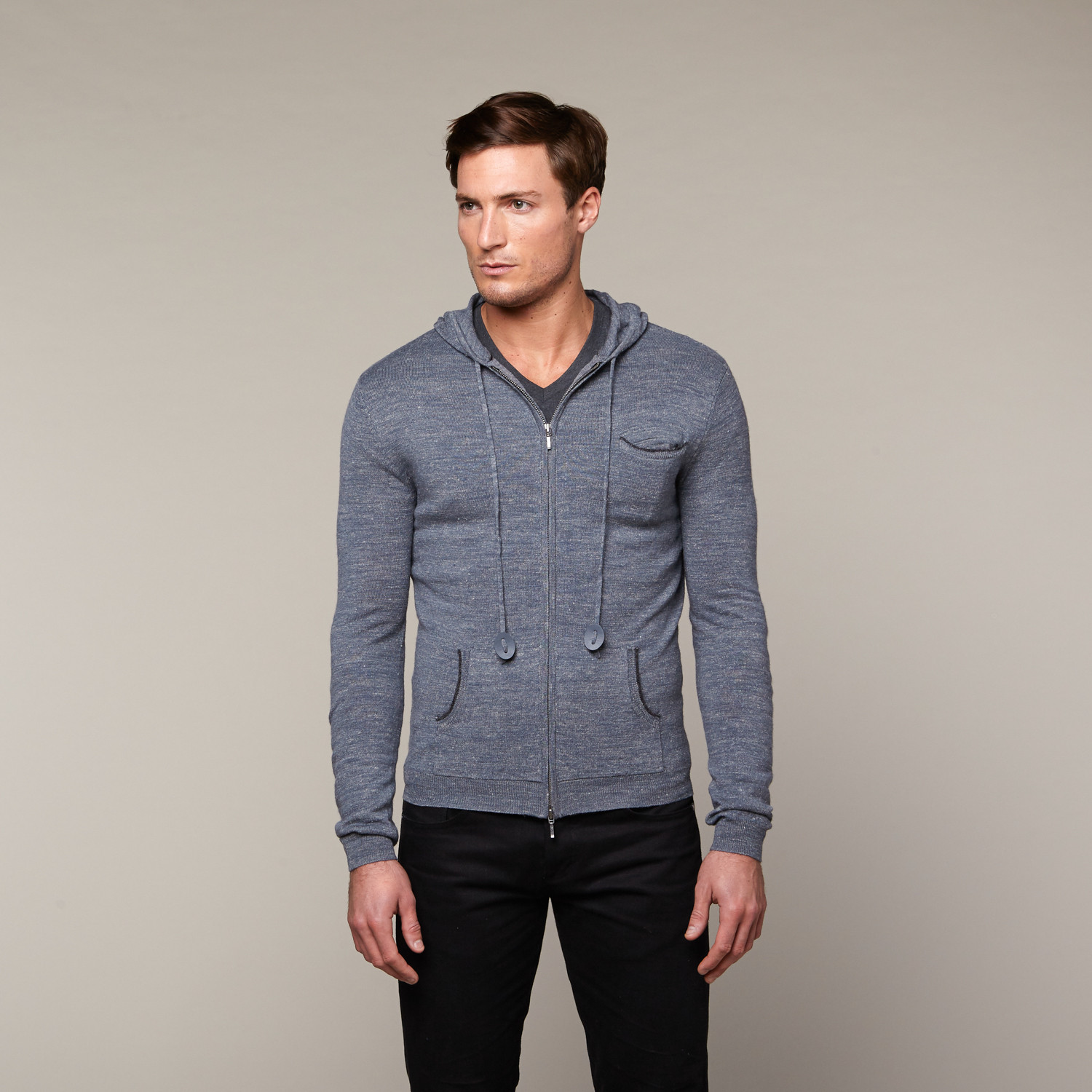 The Samana Hoodie is a fantastic essential to have on hand this winter. Done in a wool-linen blend, its contrast ribbed knit detailing, leather trim, and elbow patches, it's a little laid-back and supremely versatile.