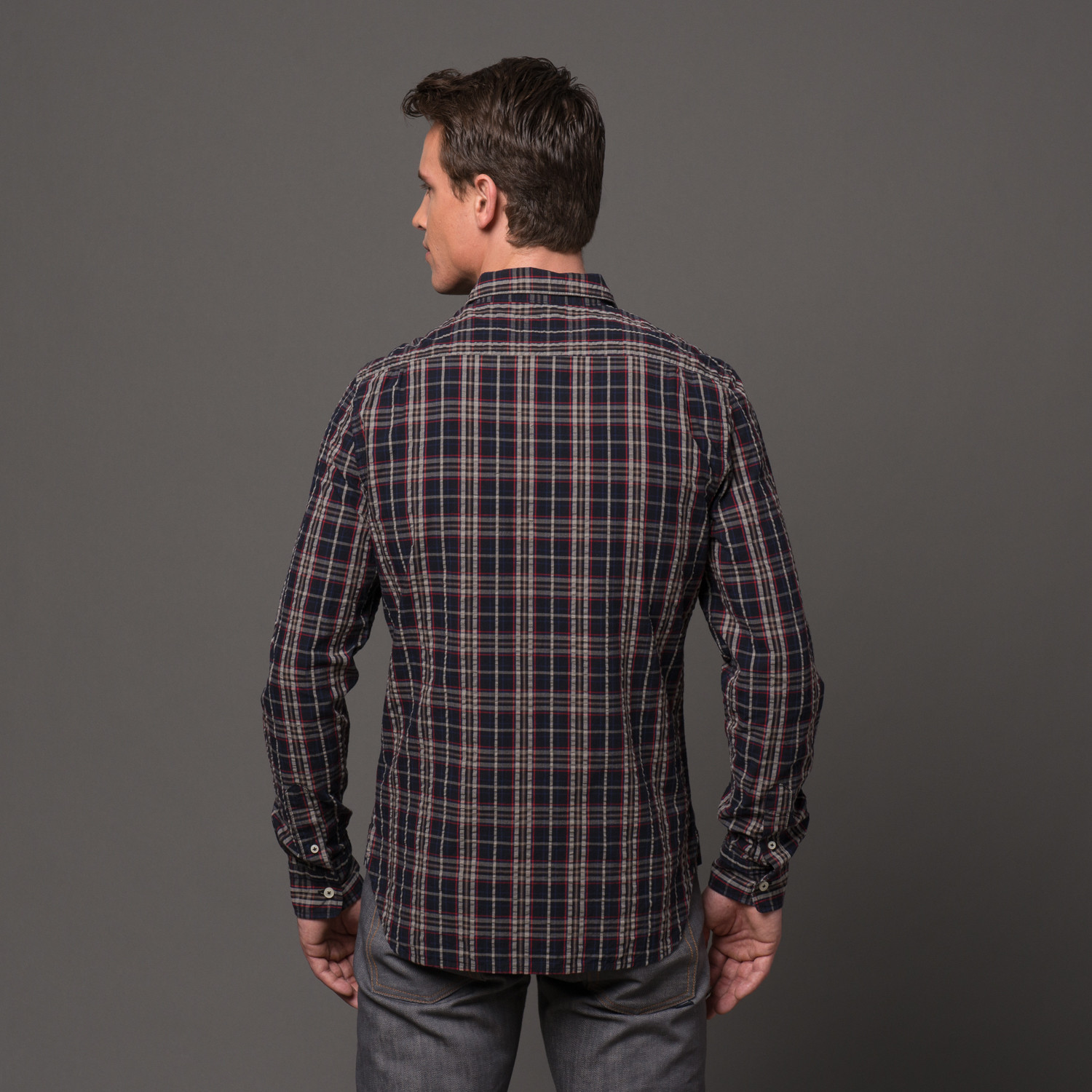 Deceptively simple, but replete with luxury fabrics, KATO’s line of plaid shirts showcases a riveting attention to detail, including intricate stitching, vintage trims, and creative labels that true vintage aficionados will adore. This Slim French Seam Long Sleeve Shirt in Red Tartan is sure to be a hit.