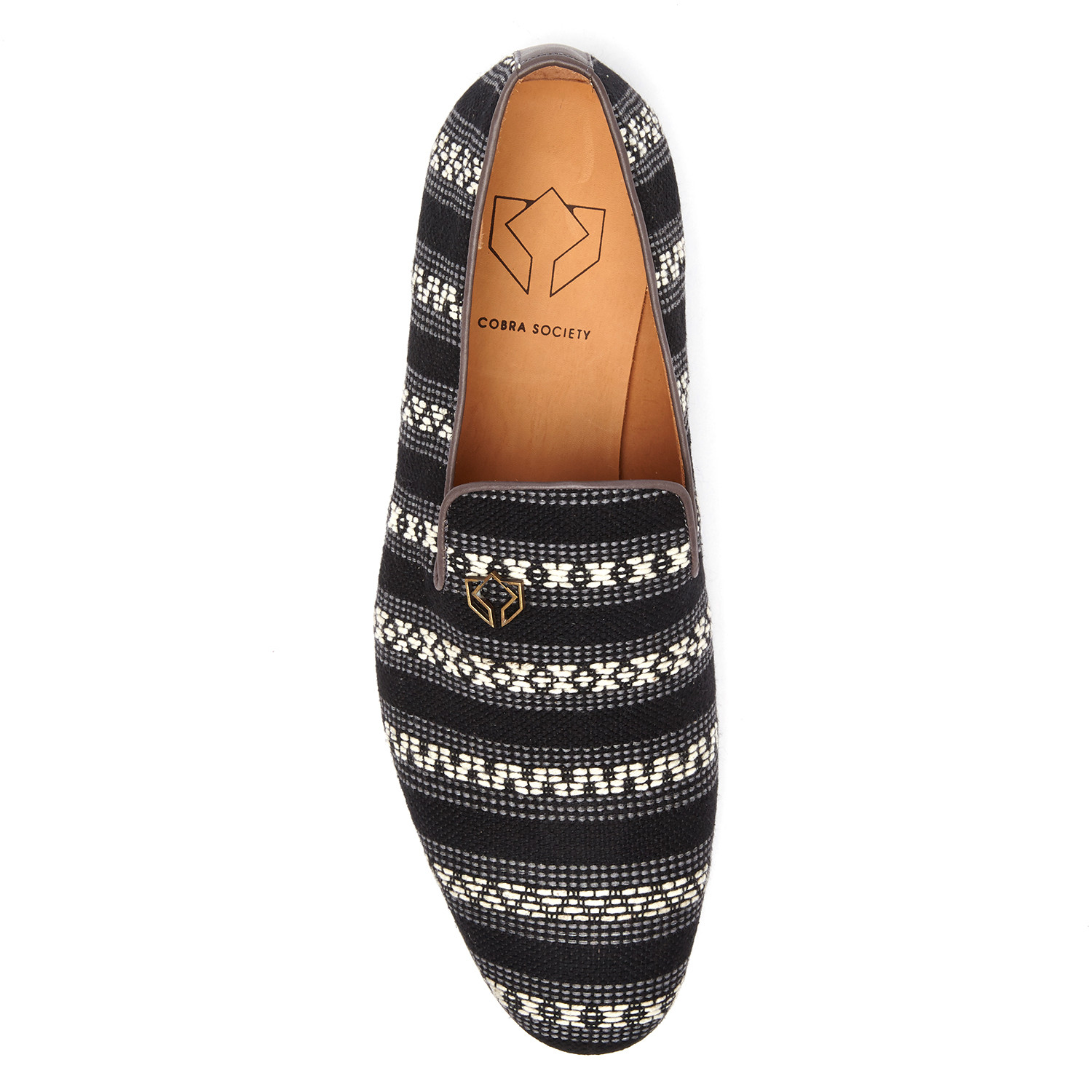 The Moroccan Hand-Woven Grey Stewy is a lounge-worthy loafer that's fit for the modern man. With a leather sole, a soft calf lining supporting your feet, and a bronze Cobra logo to complete the look, it's the perfect pair for everyday wear.