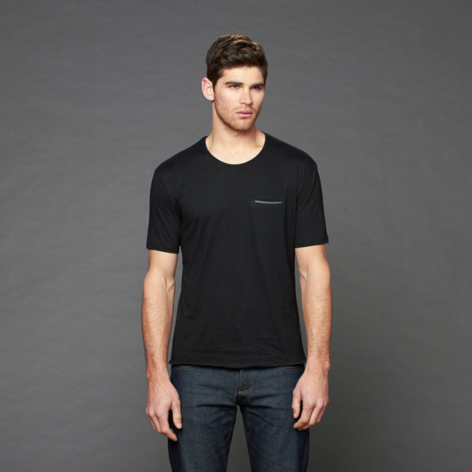 This Welt Tee is the perfect essential layering piece. With a welted contrast trimmed chest pocket and an asymmetrical curved hem, it's everything you've been looking for.