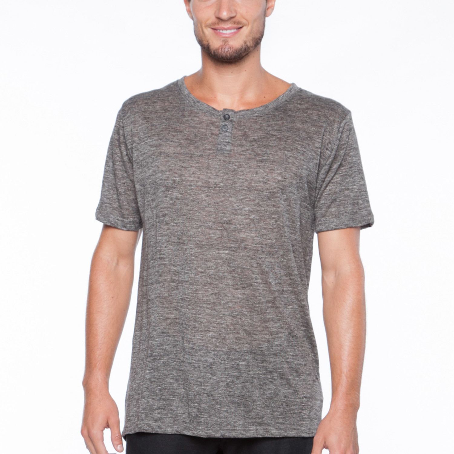 This knitted henley tee is designed to be both comfortable and stylish. This shirt pairs nicely with slim-fit black denim for a put-together casual aesthetic.